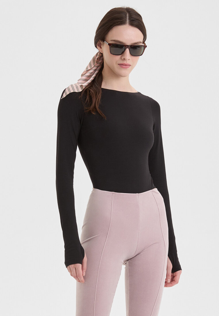 Боди с высоким вырезом бедра и длинным рукавом твое, арт. 102862, черный, S