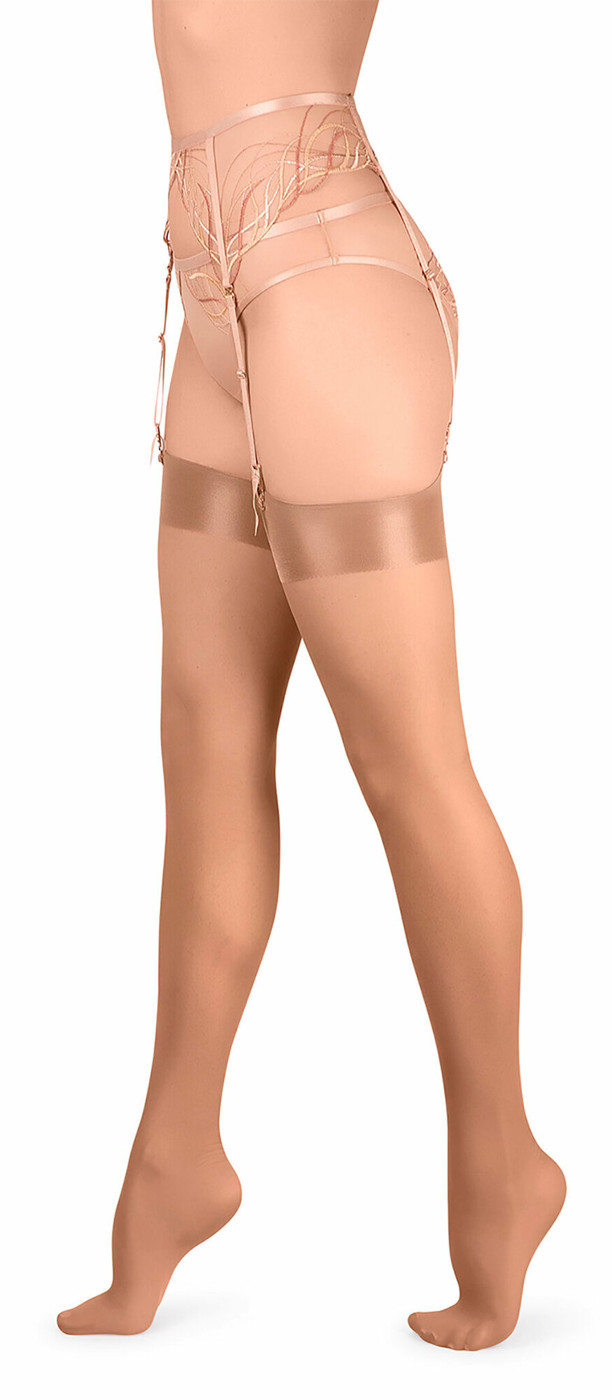 | Дополнительная информация | Тонкие шелковистые чулки без резинки с прозрачным укрепленным мыском. |