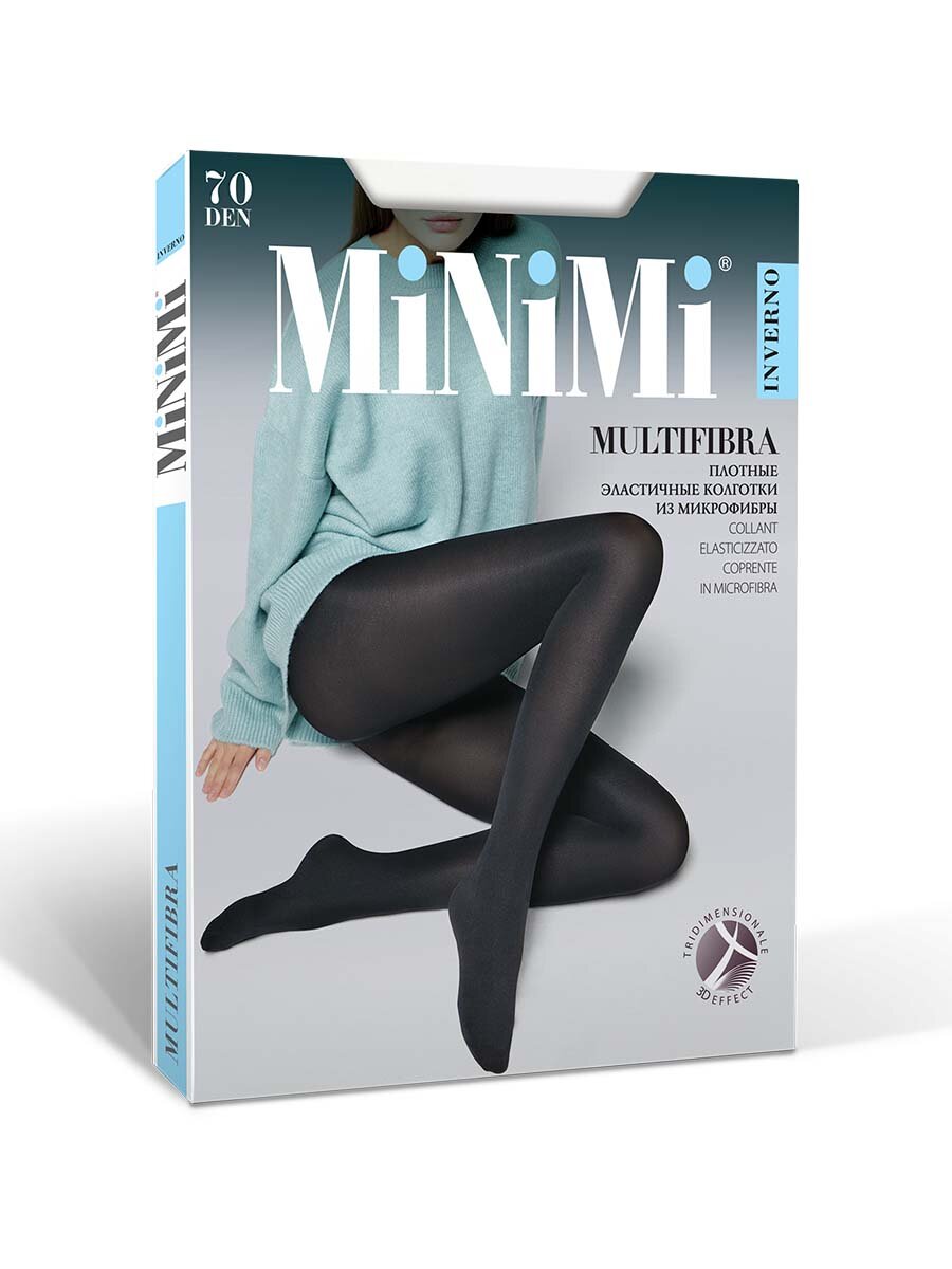 Колготки женские плотные из микрофибры MiNiMi Multifibra 70 den, Nylon 6.6, размер 4=L c х/б ластовицей, цвет Nero=Чёрный