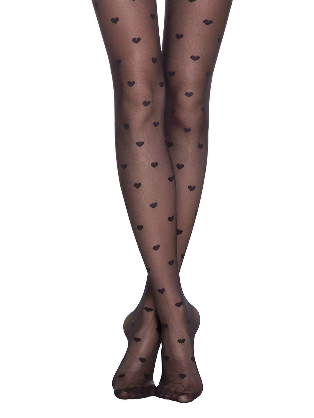 Колготки женские фантазийные тонкие в сердечки Conte BONHEUR 20, LYCRA®, размер 3=M c х/б ластовицей, цвет Nero=Чёрный