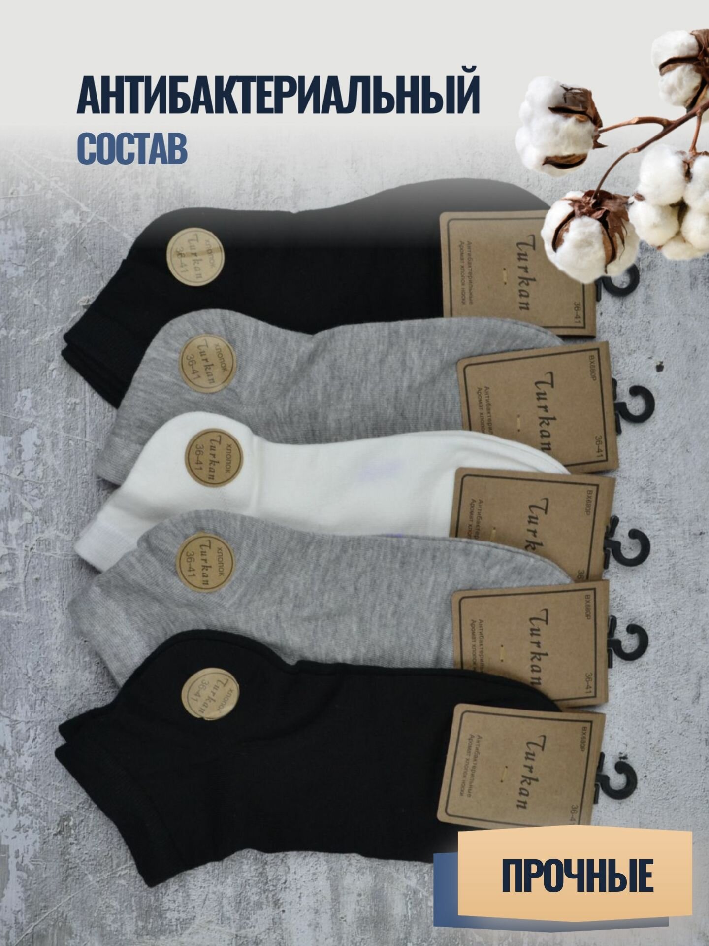 Носки женские набор короткие летние хлопок 5 пар Туркан