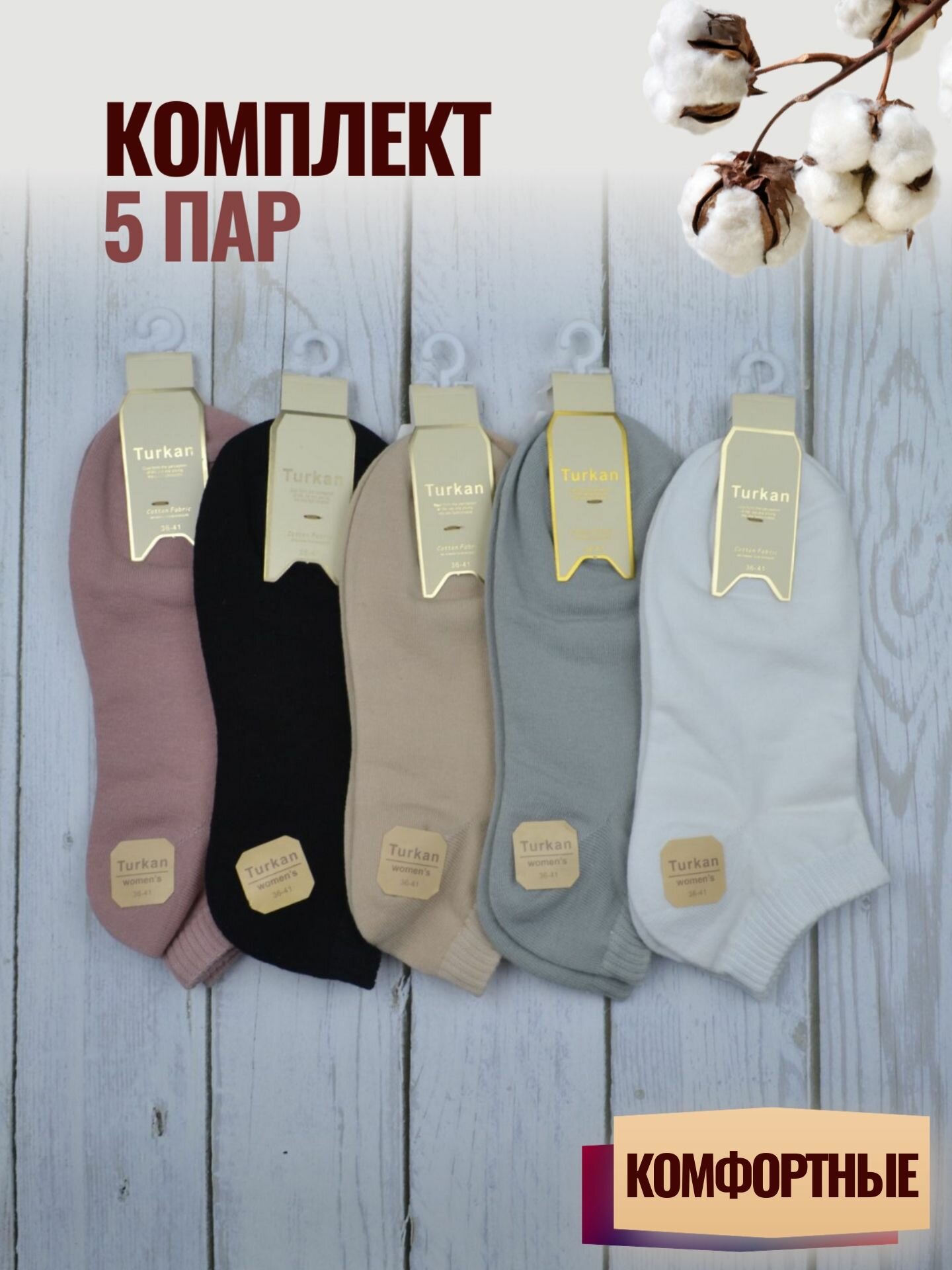 Носки женские набор короткие летние хлопок 5 пар Туркан