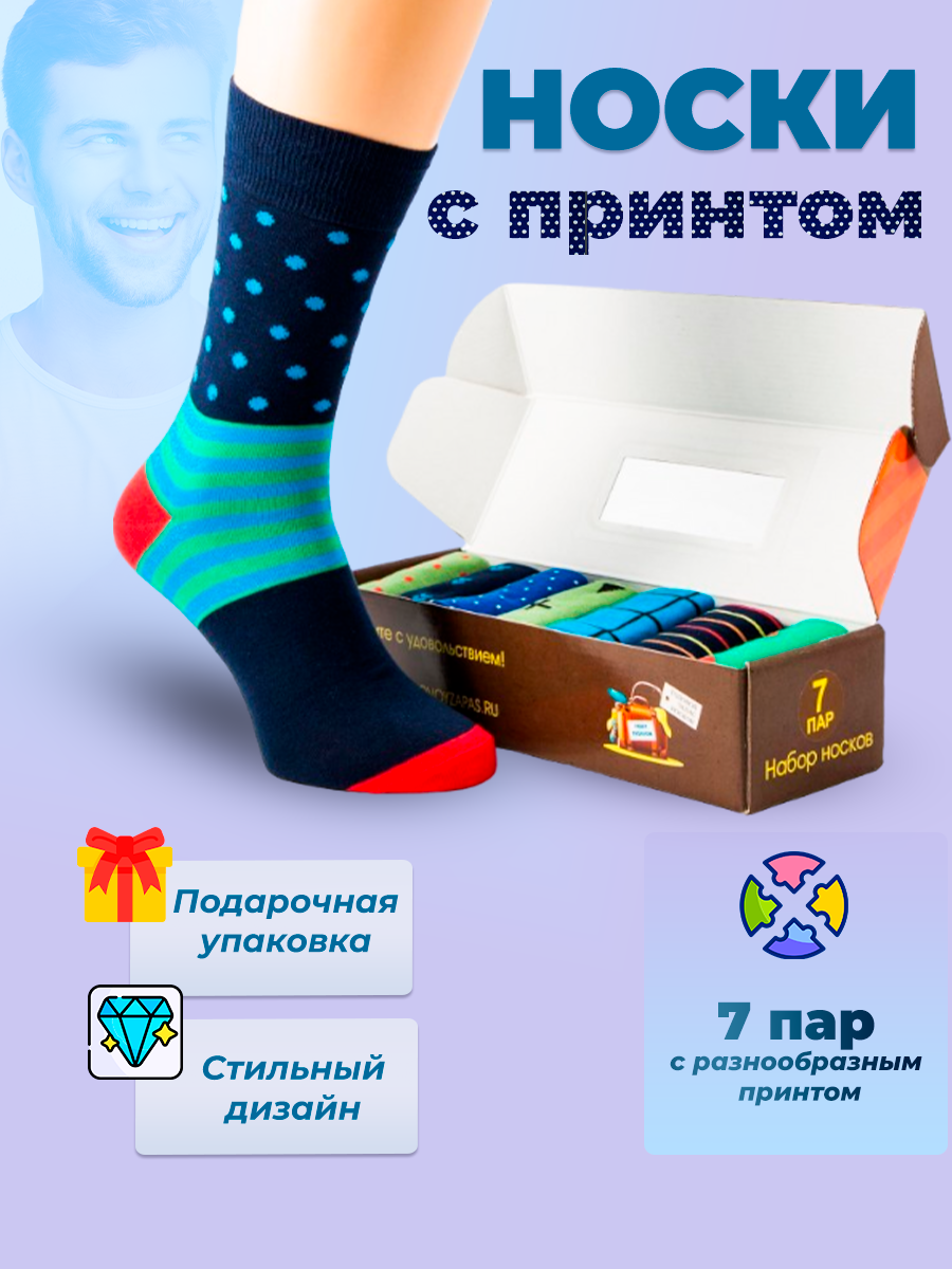 Сохранитьноски дизайнерские, набор из 7 пар godovoyzapas, ассорти №1, размер 43-45 интересное: