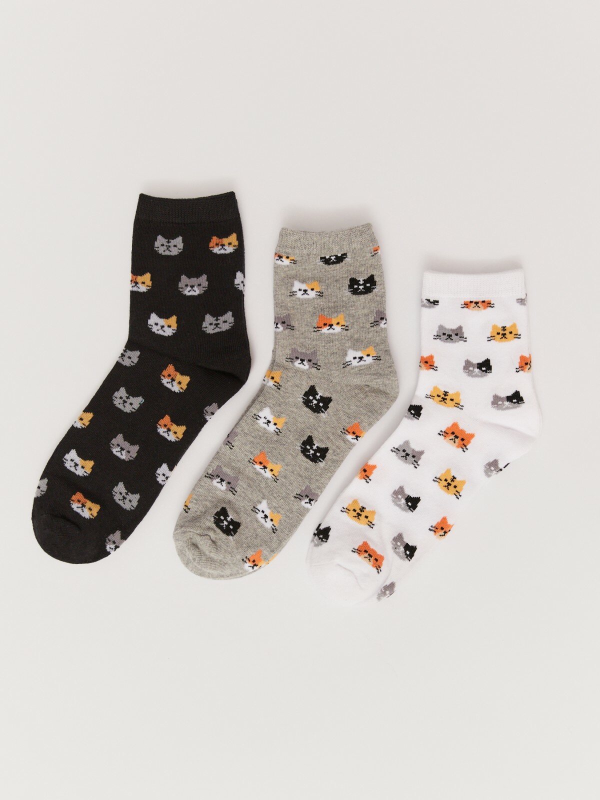 Купить Набор высоких носков (3 пары в комплекте), цвет белый, серый, черный, размер 23-25 224319962045