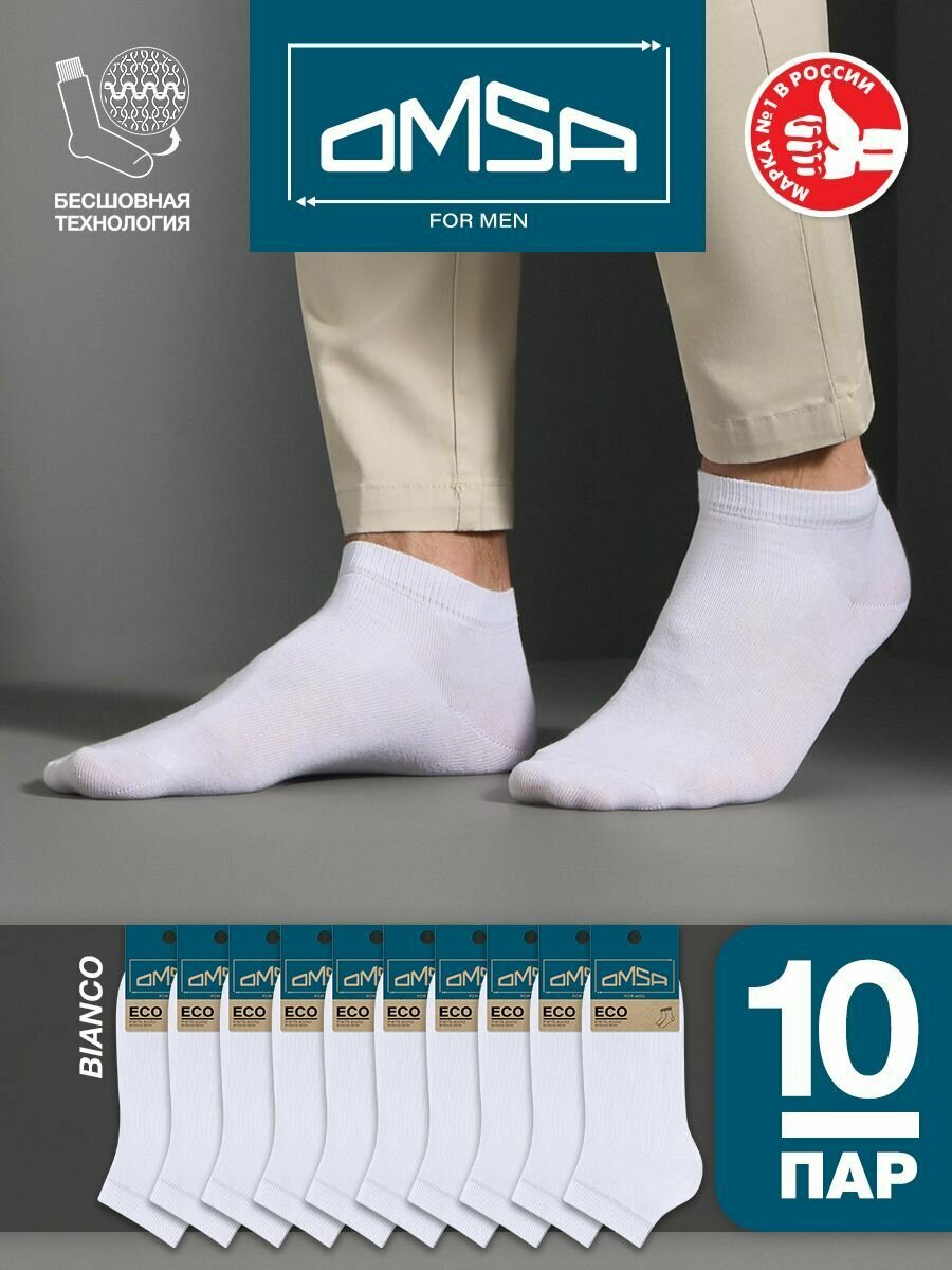 Носки мужские OMSA ECO 402, Bianco 42-44, короткие, носки хлопок, носки спортивные, набор 10 шт