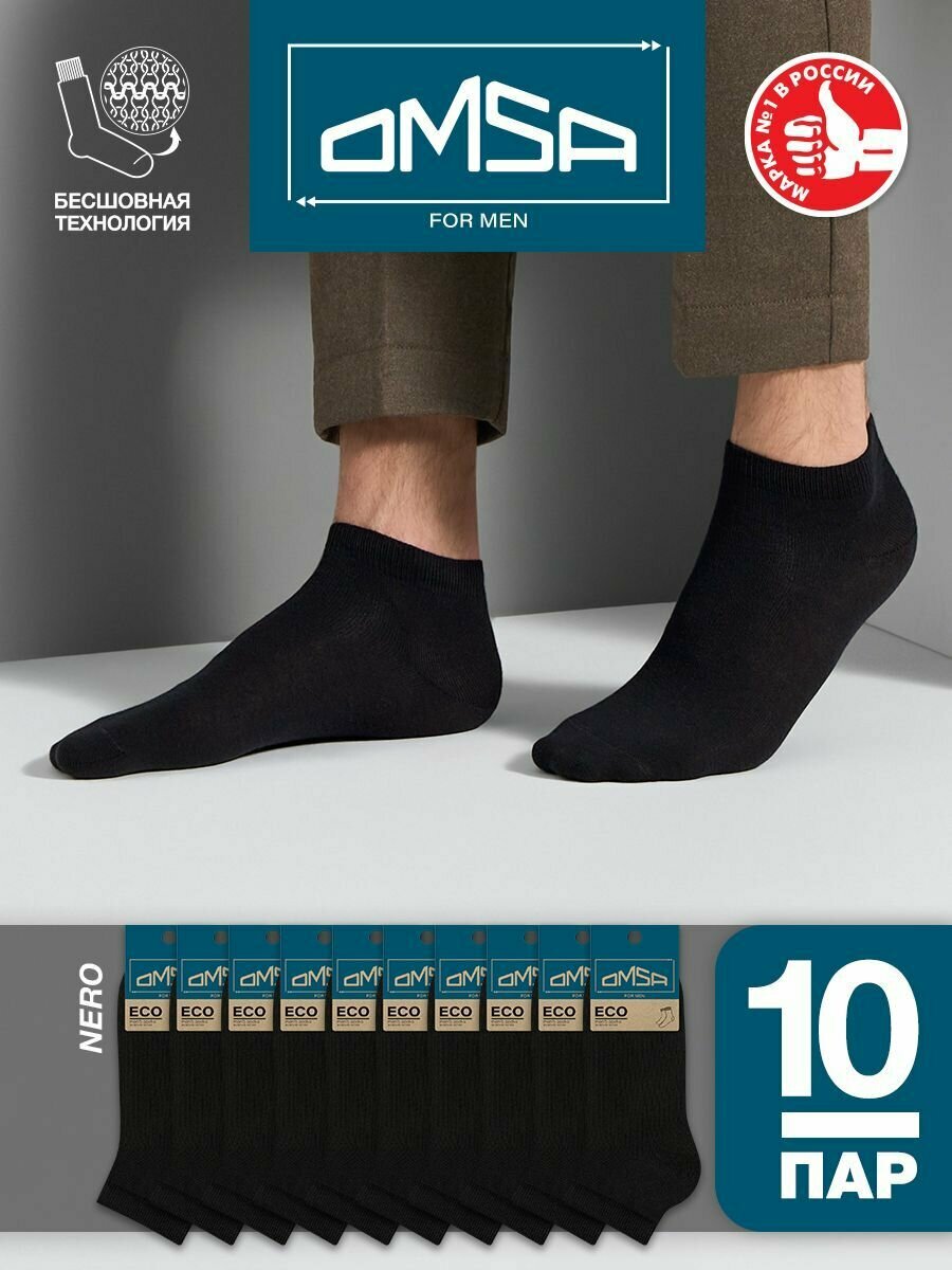 Носки мужские OMSA ECO 402, Nero 39-41, короткие, носки хлопок, носки спортивные, набор 10 шт