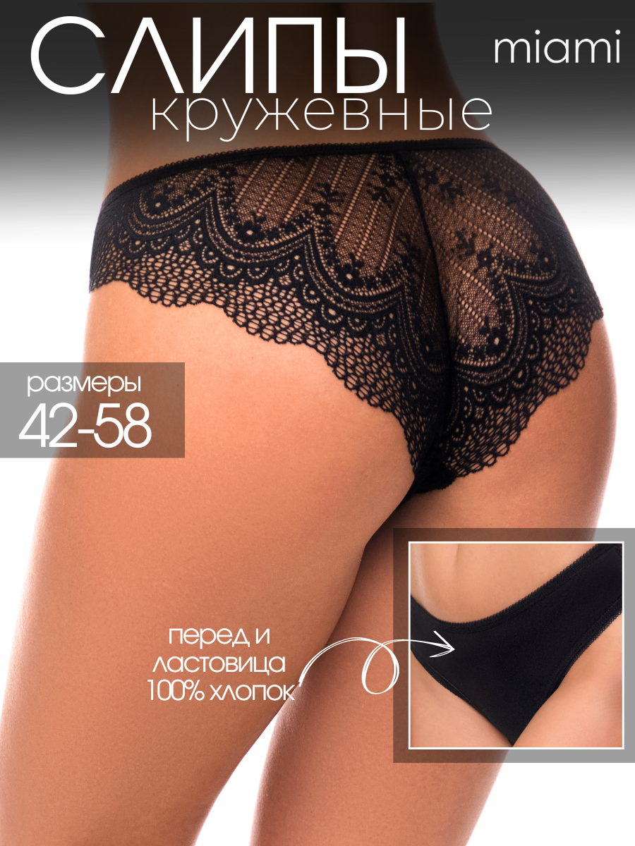 Купить Трусы женские слипы, размер 58, средняя посадка, хлопок, кружево, Miami, черный