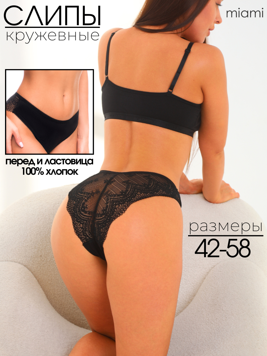 СохранитьТрусы женские слипы, размер 58, средняя посадка, хлопок, кружево, Miami, черный интересное: