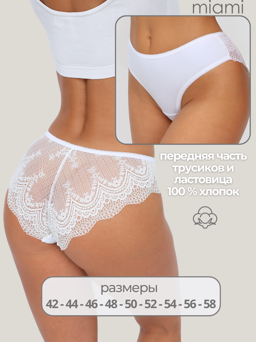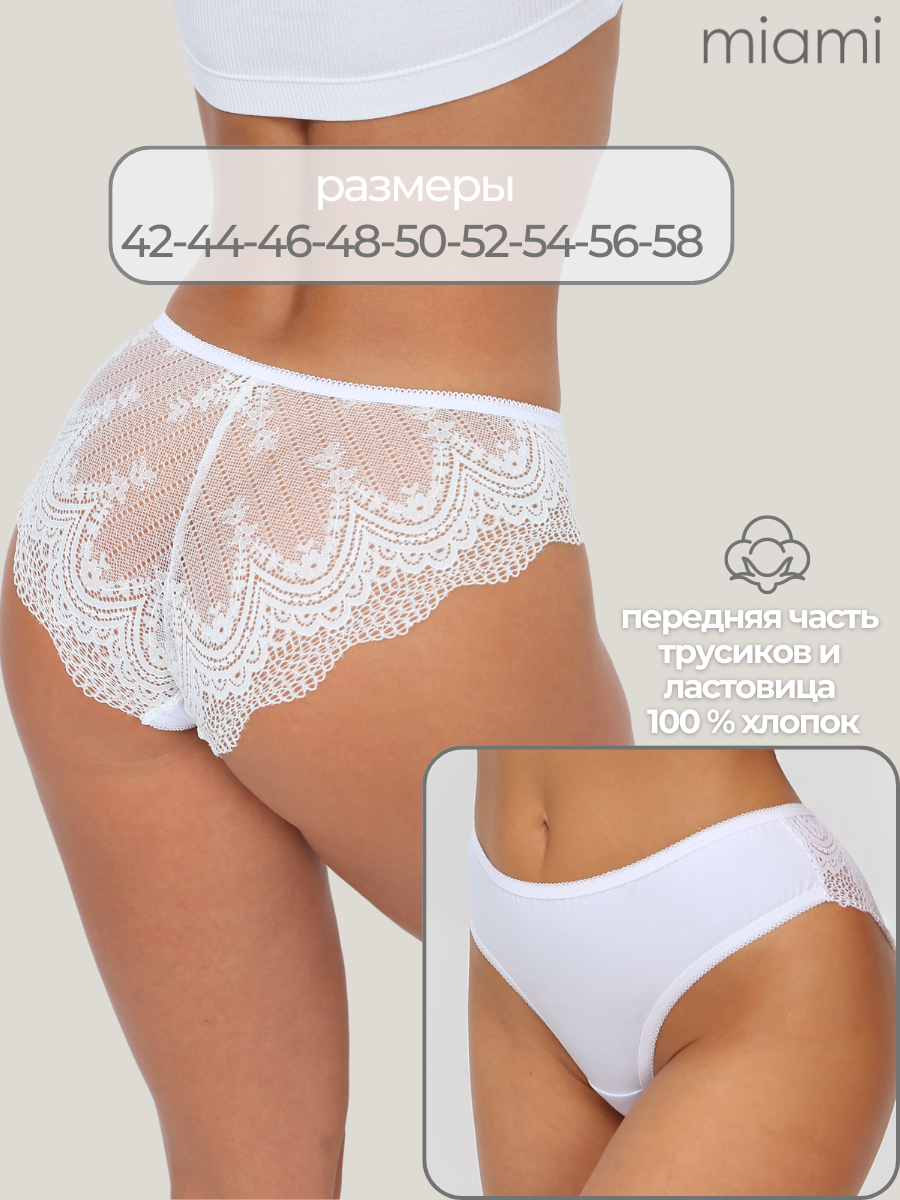СохранитьТрусы женские слипы, размер 44, средняя посадка, хлопок, кружево, Miami, белый интересное: