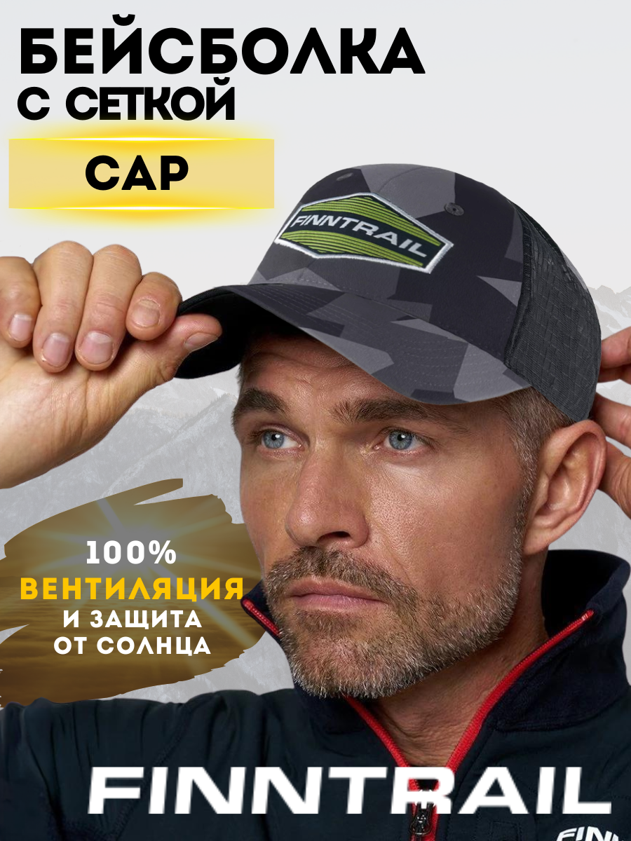 Бейсболка с сеткой мужская летняя Finntrail CAP CamoShadowBlack интересное: