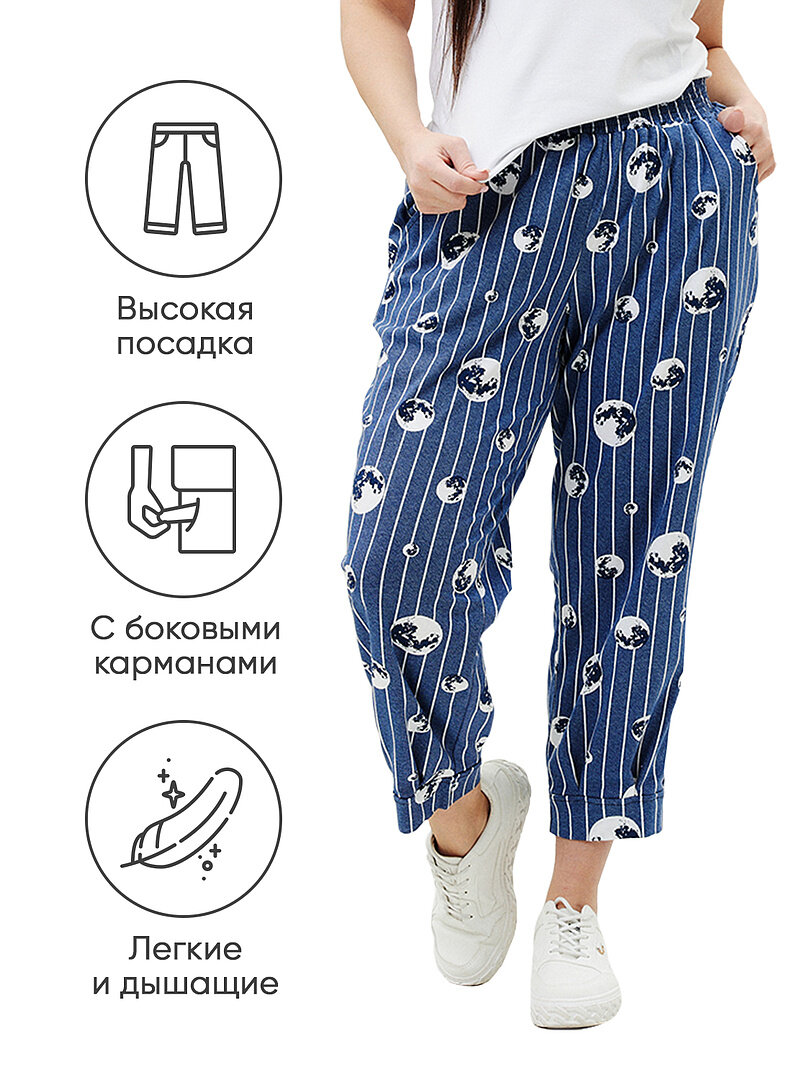 Купить Женские брюки/ брюки-бананы в цвете джинс, размер 50