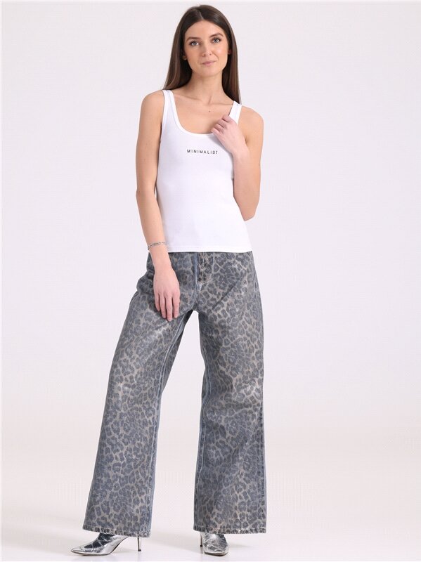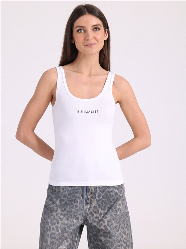 Топ - майка женский белый с принтом хлопок с лайкрой Апрель 1ЖНС4451804/1190/31/*/2981/*/*/* белый,черный 96-164