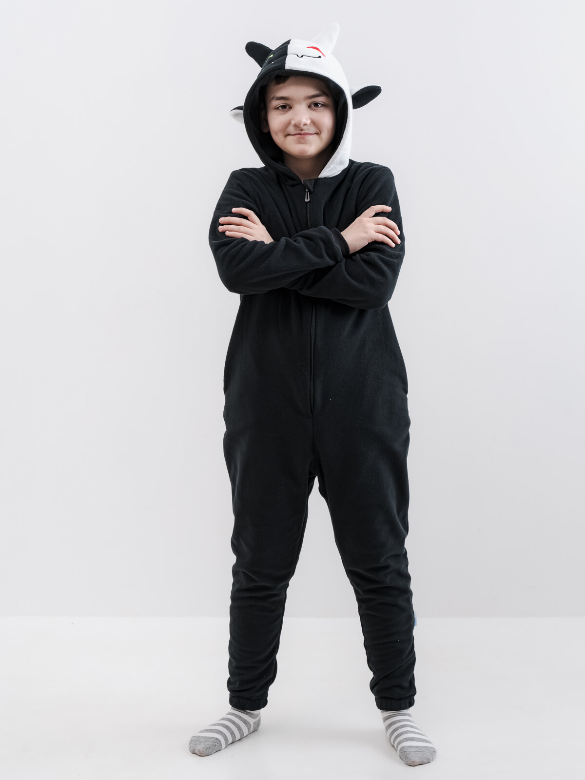 Кигуруми "Дракон" арт. 21233, цвет: черный, белый, размер S интересное: