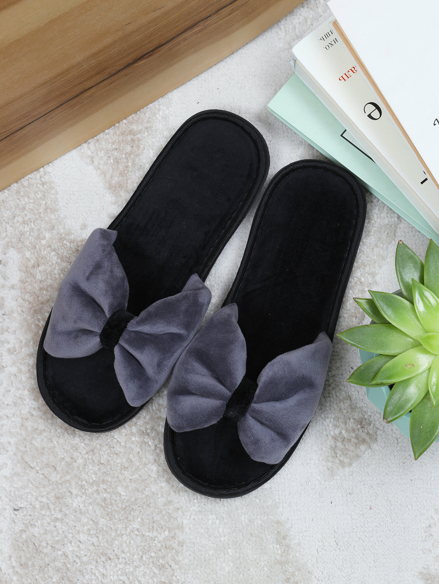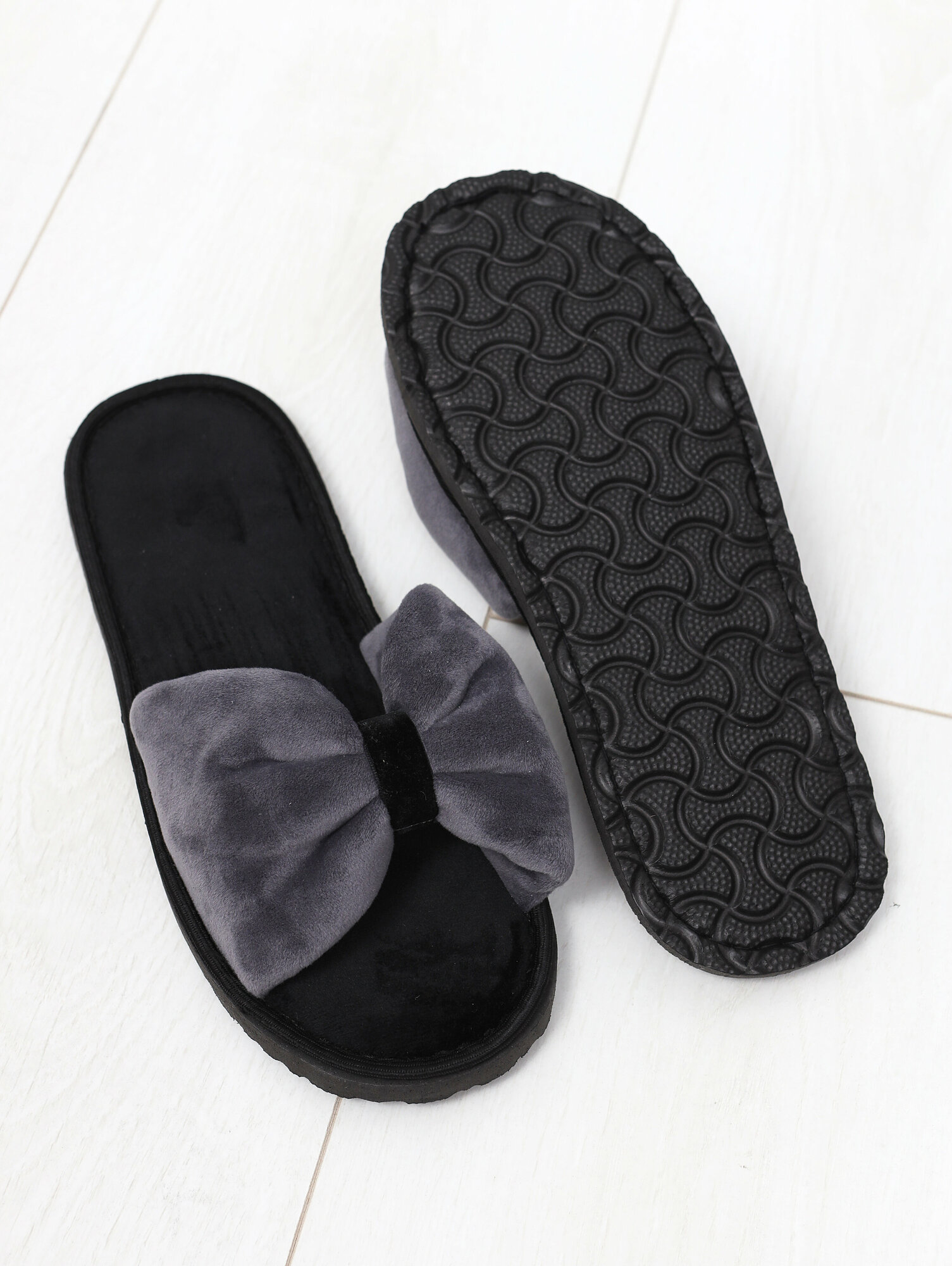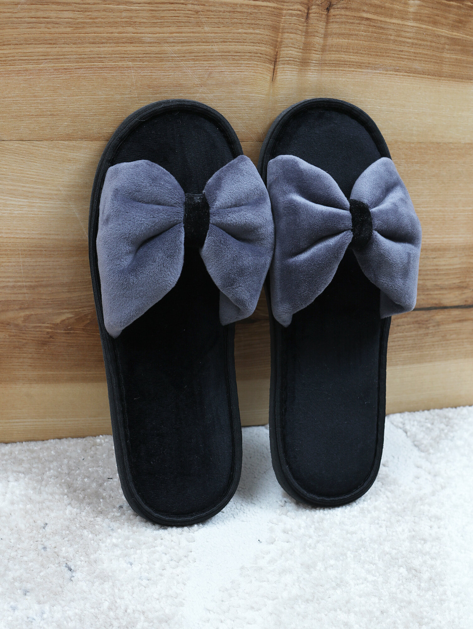 Тапочки ALBERY тапочки женские/тапочки для дома/велюровые тапочки/тапочки с бантом/домашние тапочки/мягкие женские тапочки/комнатные тапочки/домашняя обувь, размер 38-39, черный