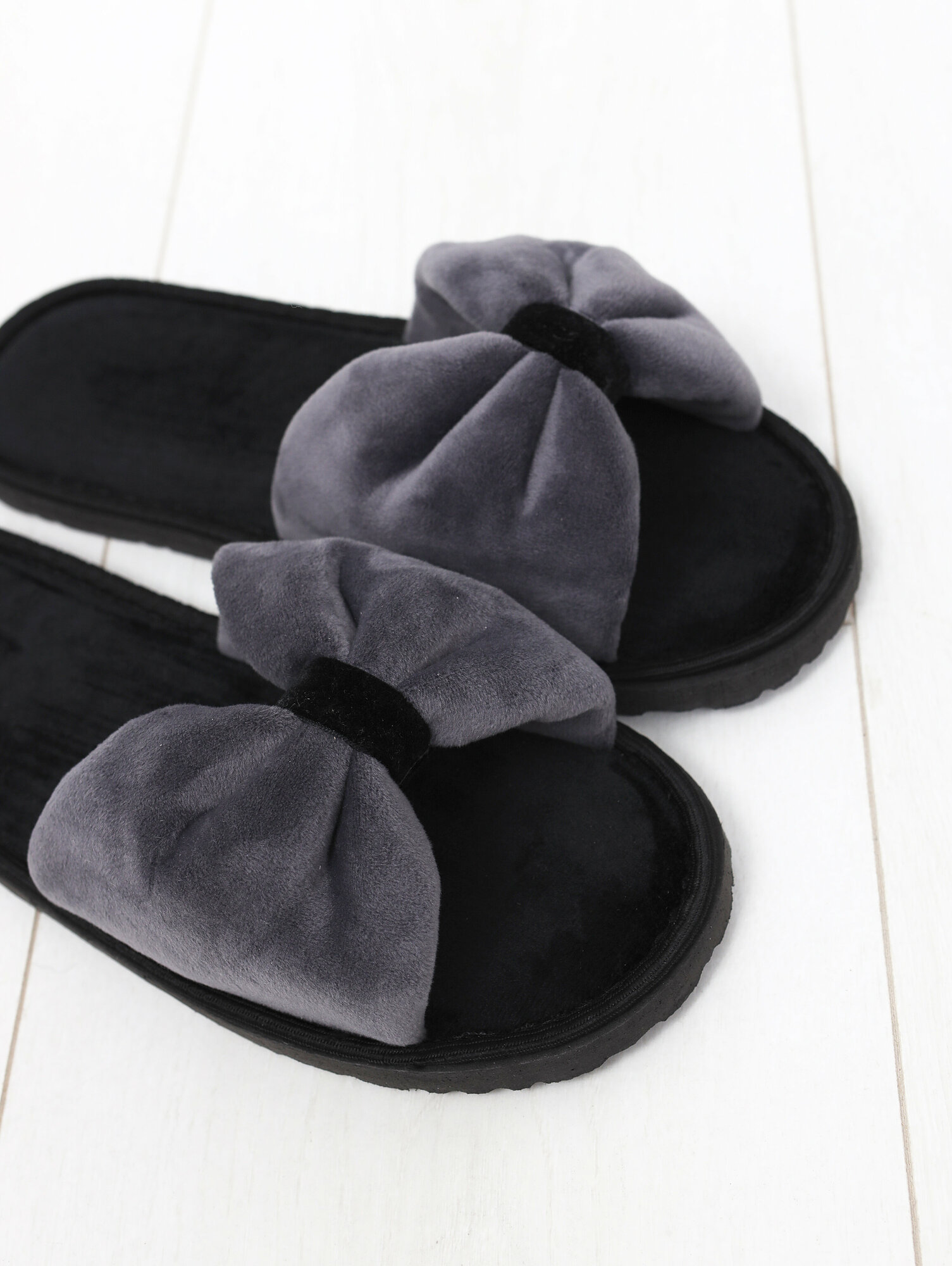 Тапочки ALBERY тапочки женские/тапочки для дома/велюровые тапочки/тапочки с бантом/домашние тапочки/мягкие женские тапочки/комнатные тапочки/домашняя обувь, размер 36-37, серый