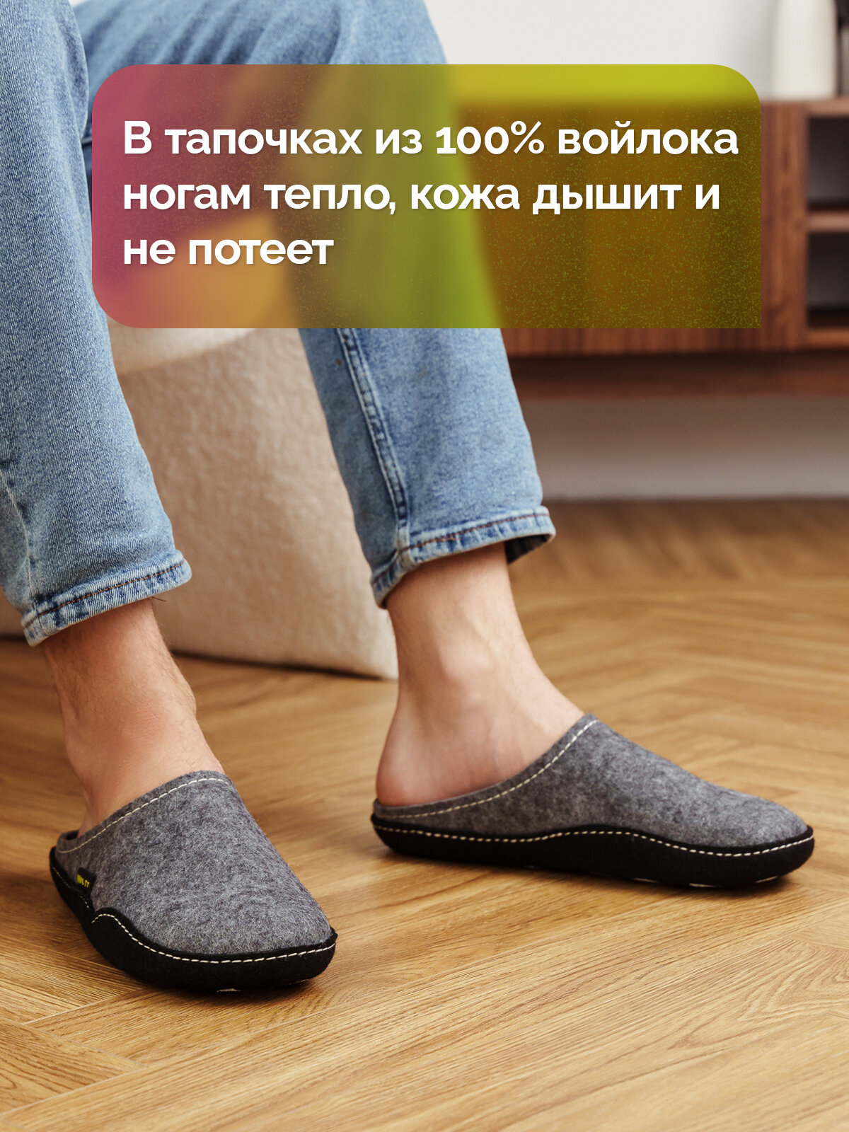 Тапочки войлочные Холти Онега теплые домашние мужские тапки из искусственного войлока (р. 42), темно-серый