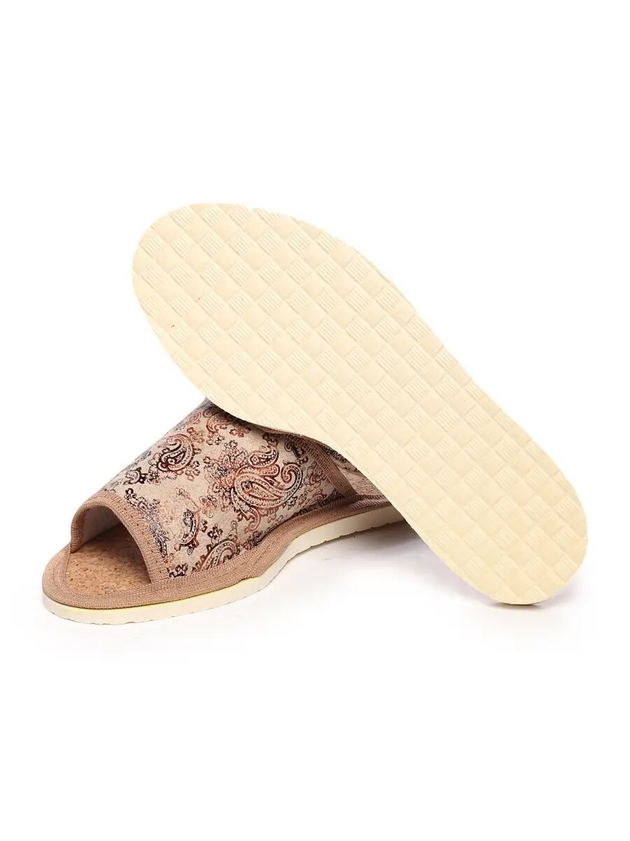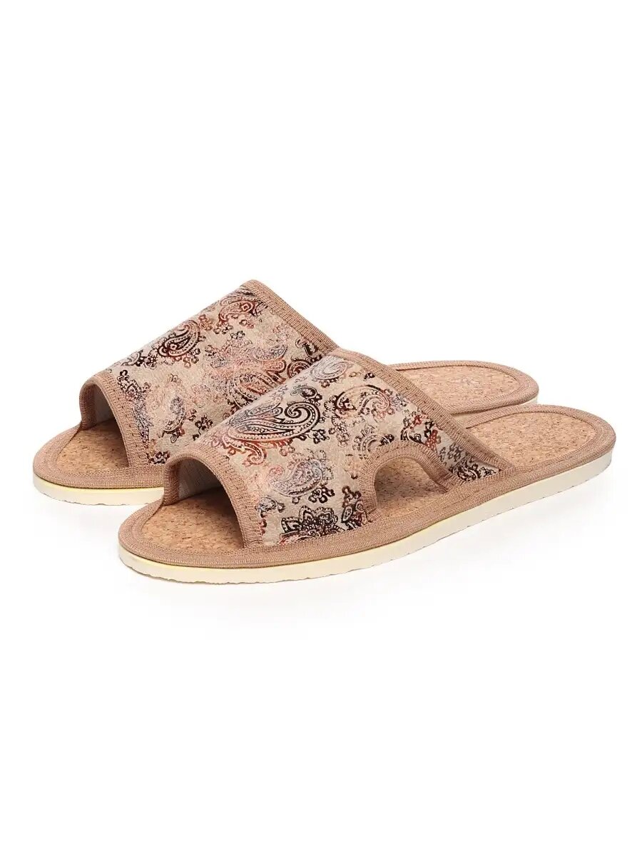 Купить Женские домашние тапочки "LepiloV", открытые, на пробковой стельке. Размер 42. Бежевые огурцы.