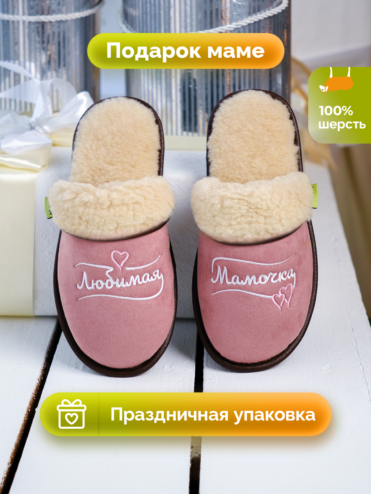 СохранитьТапочки теплые из шерсти Холти Подарок мамочке меховые домашние женские тапки шерстяные (р. 39), розовый интересное: