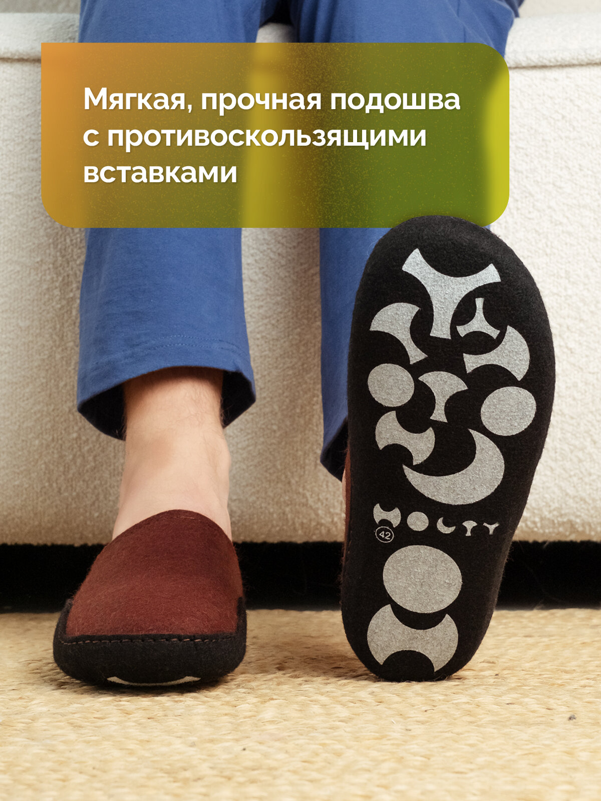 Тапочки войлочные Холти "Дудинка" теплые домашние мужские тапки из натурального войлока (р. 42), терракотовый