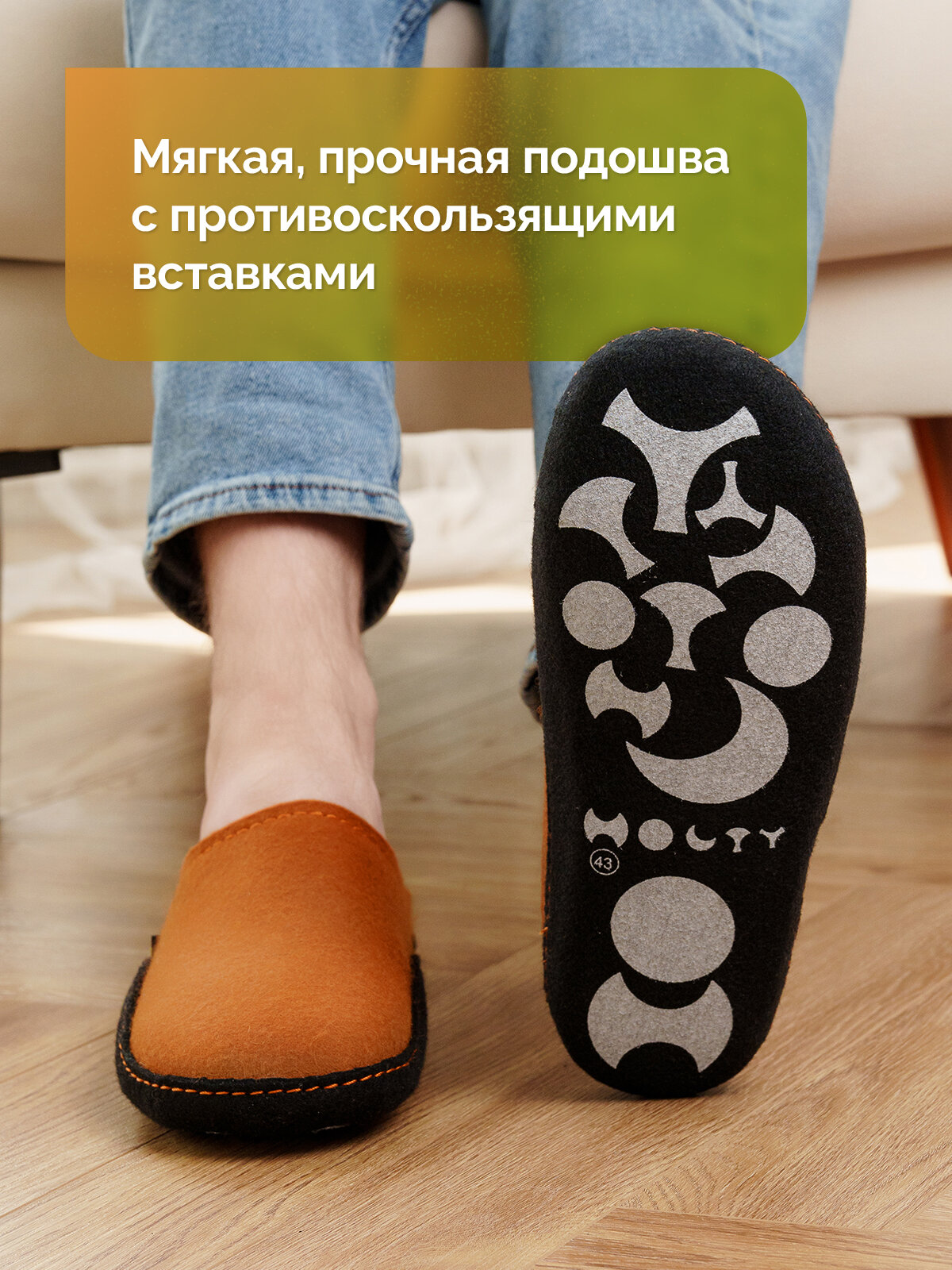 Мужские тапочки войлочные Холти "Дудинка" теплые домашние мужские тапки из натурального войлока (р. 43), оранжевый