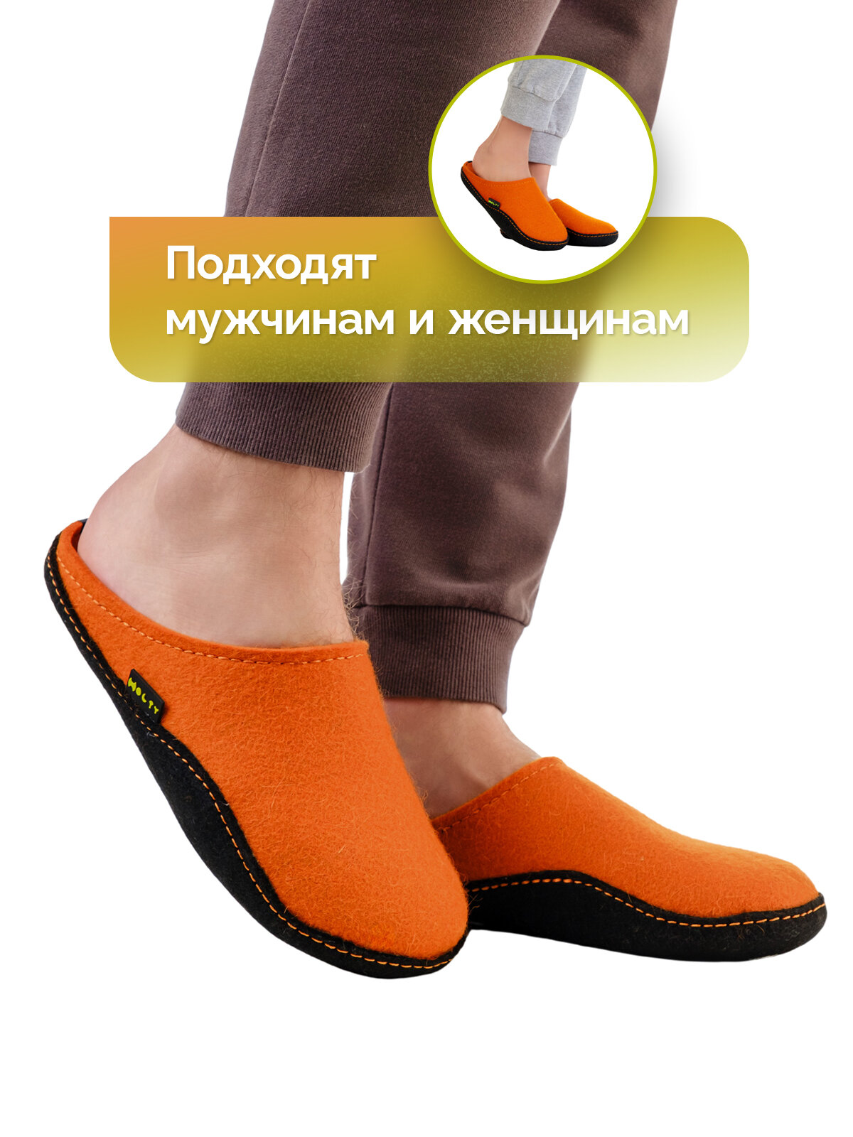 Мужские тапочки войлочные Холти "Дудинка" теплые домашние мужские тапки из натурального войлока (р. 42), оранжевый