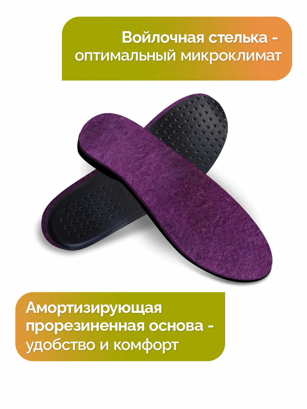 Тапочки войлочные Холти "Дудинка" теплые домашние женские тапки из натурального войлока (р. 37), фиолетовый