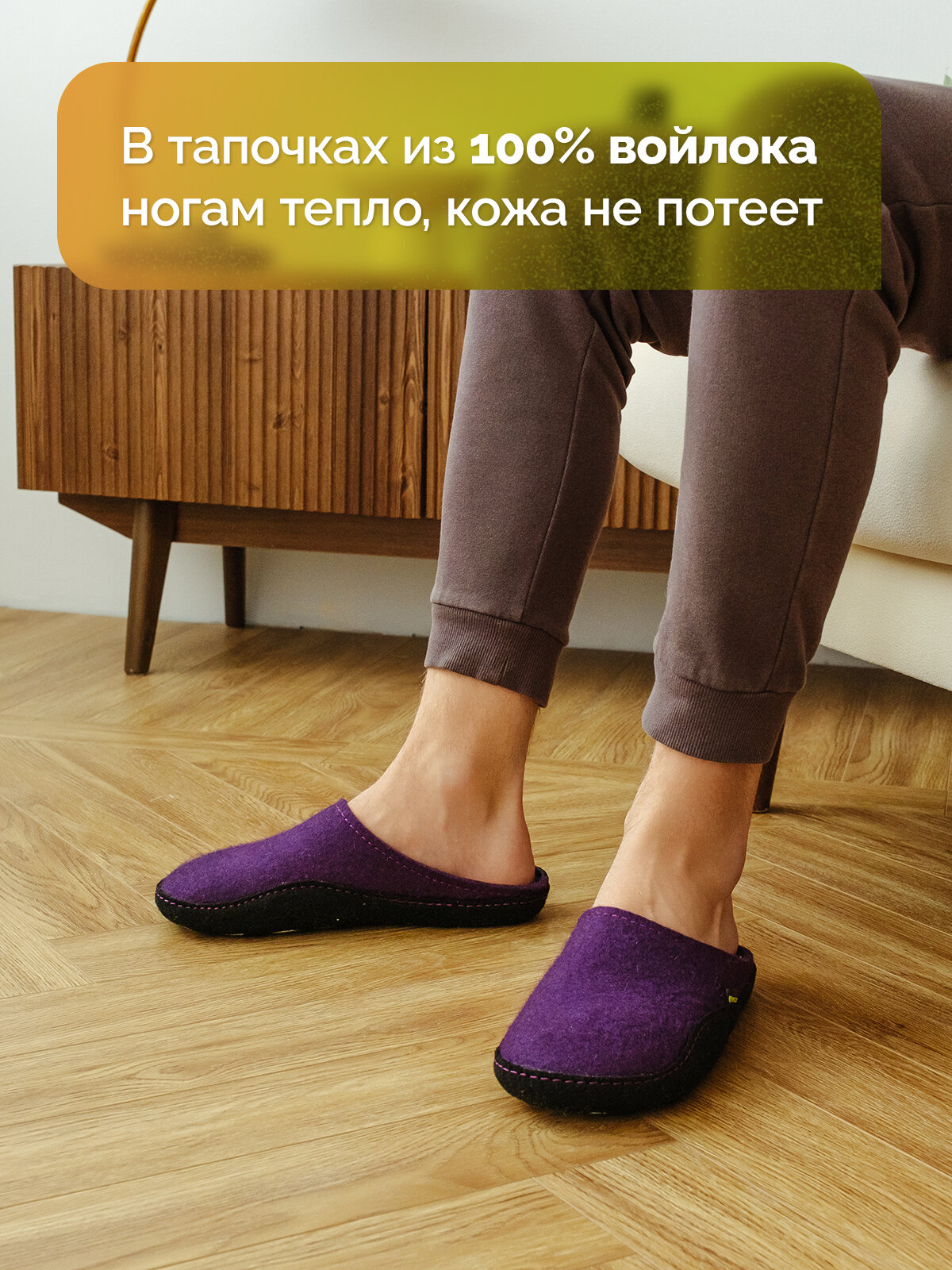 СохранитьМужские тапочки войлочные Холти "Дудинка" теплые домашние мужские тапки из натурального войлока (р. 42), фиолетовый интересное:
