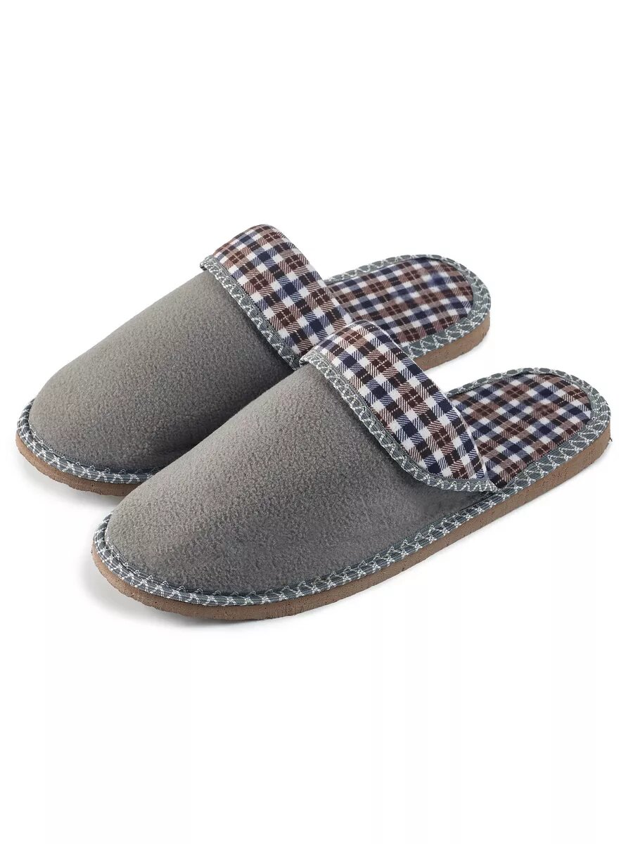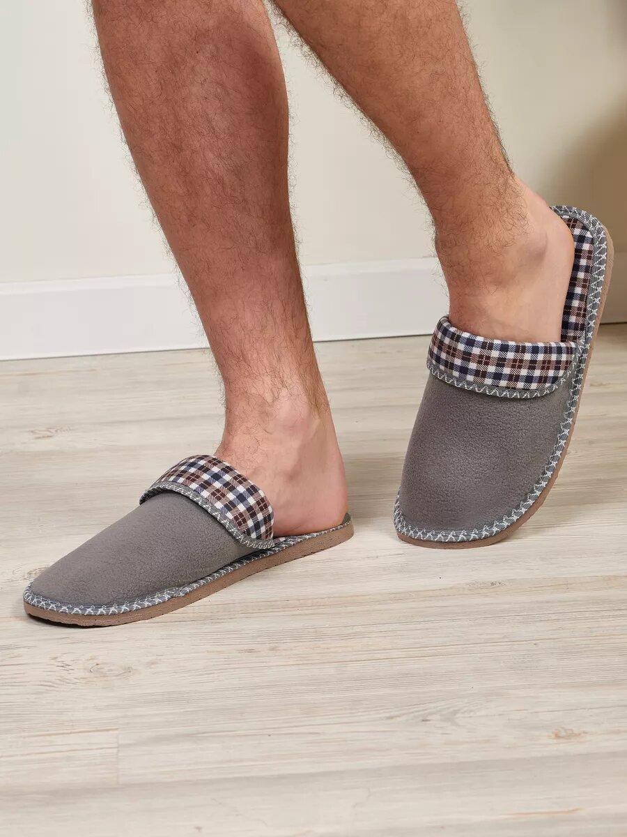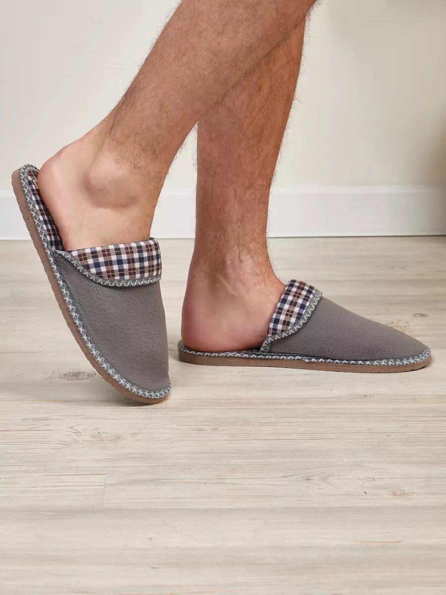 СохранитьМужские домашние тапки "LepiloV", закрытые, на текстильной стельке. Размер 42. Серый флис клетка сине-коричневая. интересное: