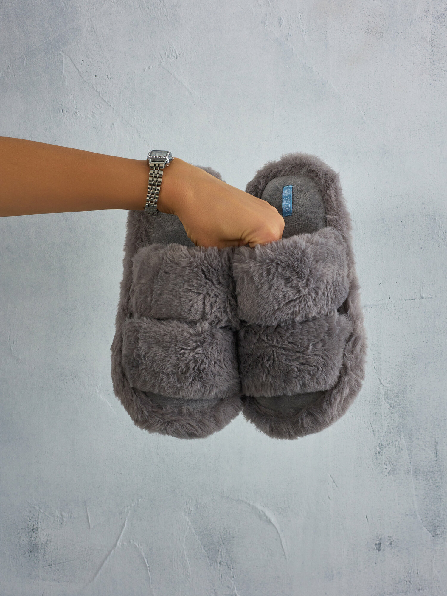 Купить Тапочки женские домашние меховые VATA серые 36-37 размер, открытые, летние