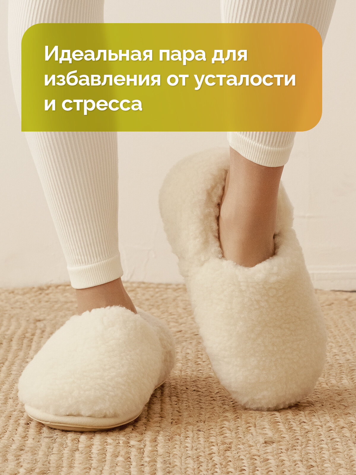 Тапочки из шерсти Холти "Уютные" теплые меховые домашние женские (38), белый