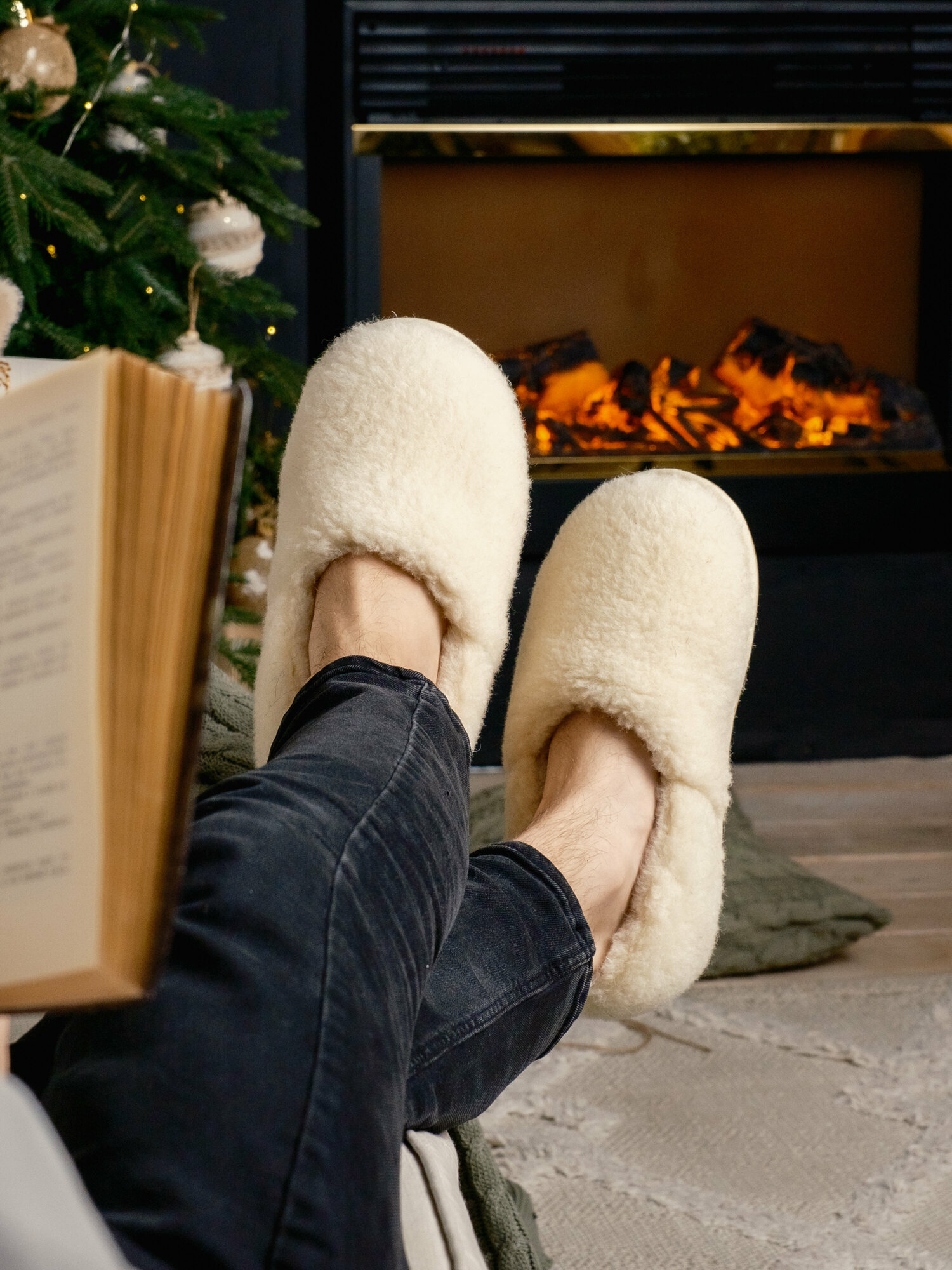 Тапочки из шерсти Холти "Уютные" теплые меховые домашние женские (39), белый