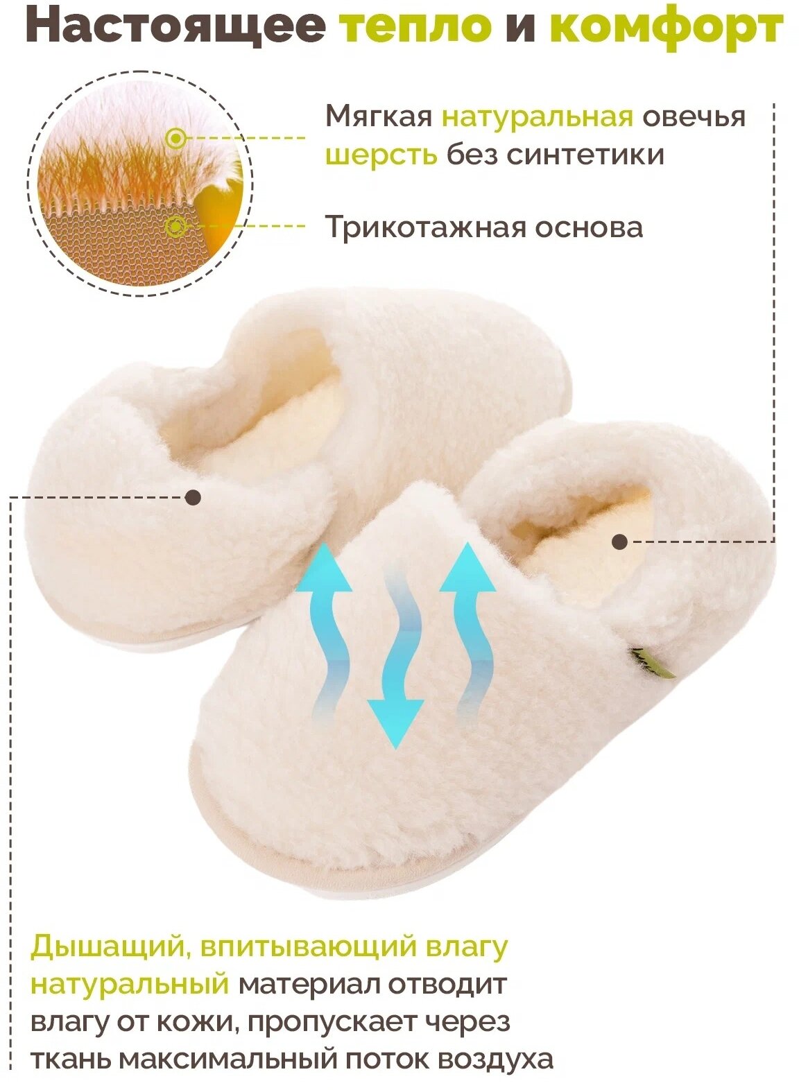 Тапочки из шерсти Холти "Уютные" теплые меховые домашние женские (37), белый