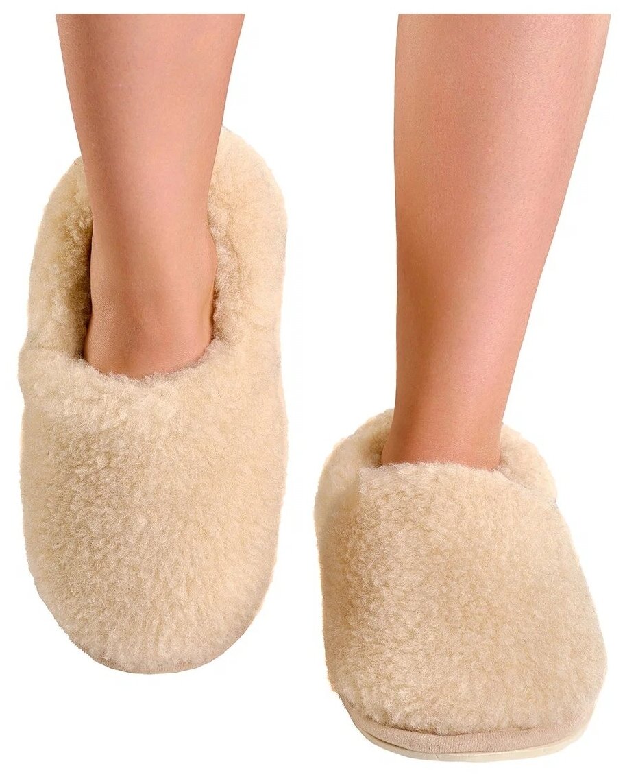 Тапочки из шерсти Холти "Уютные" теплые меховые домашние женские (бежевые) (36)