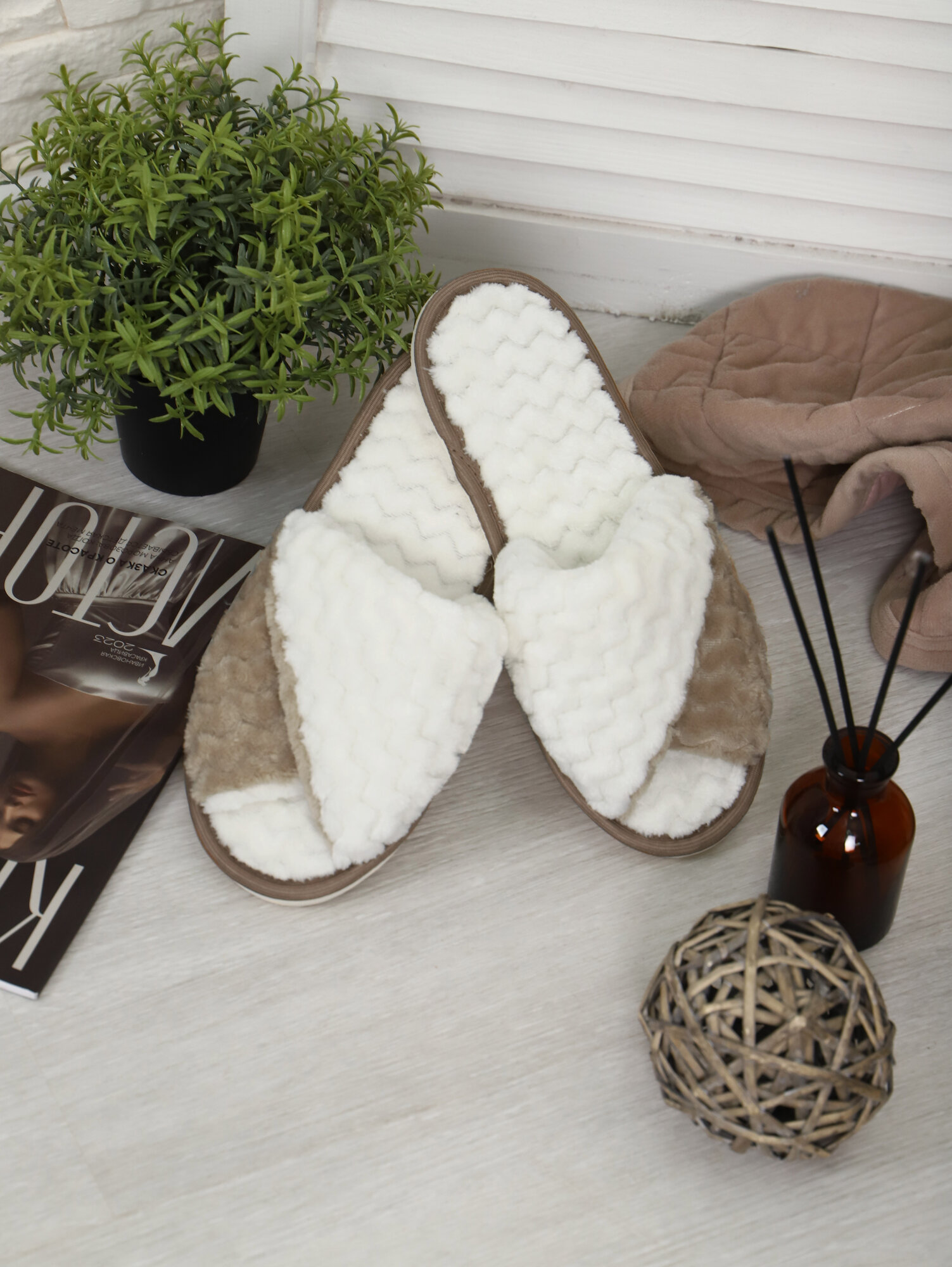 Тапки EMOTION DAY «Ваниль» (женск. вэлсофт откр. нос, внахлёст) р-р: 36-37