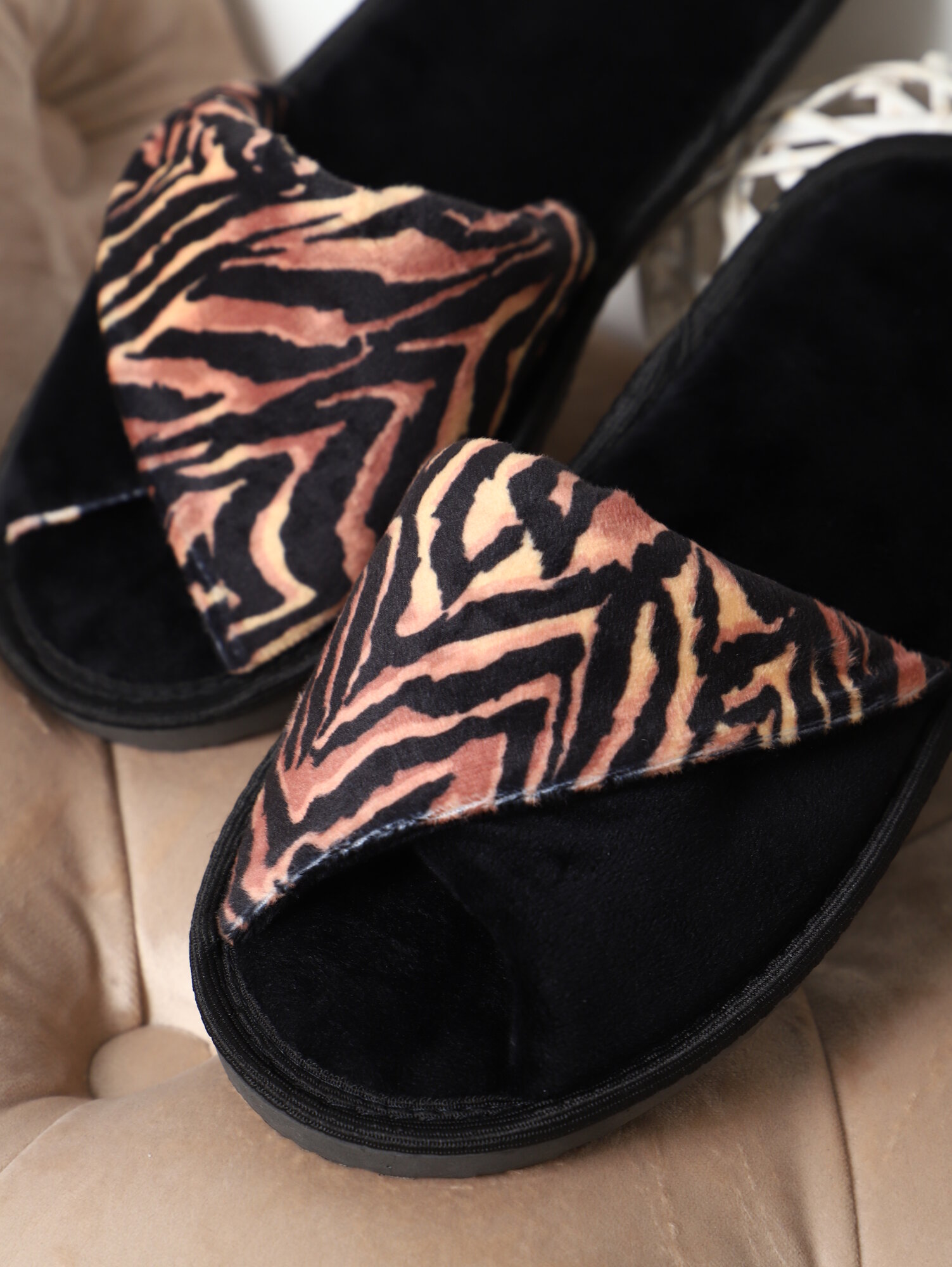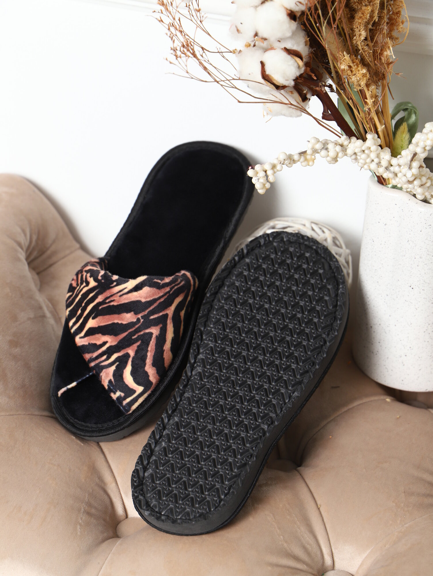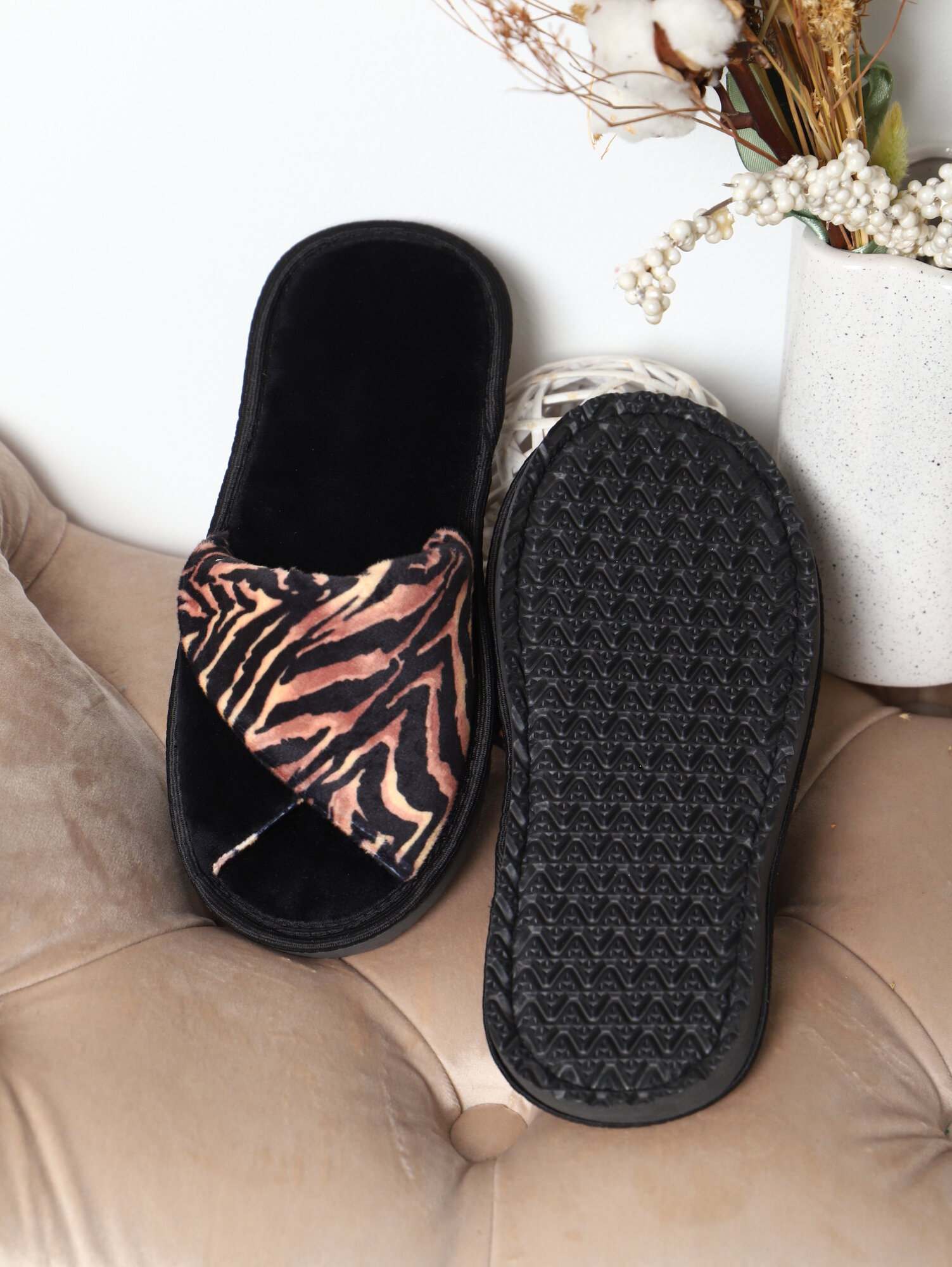 Тапки EMOTION DAY «Black Tiger» (женск. велюр откр. нос, внахлёст) р-р: 36-37