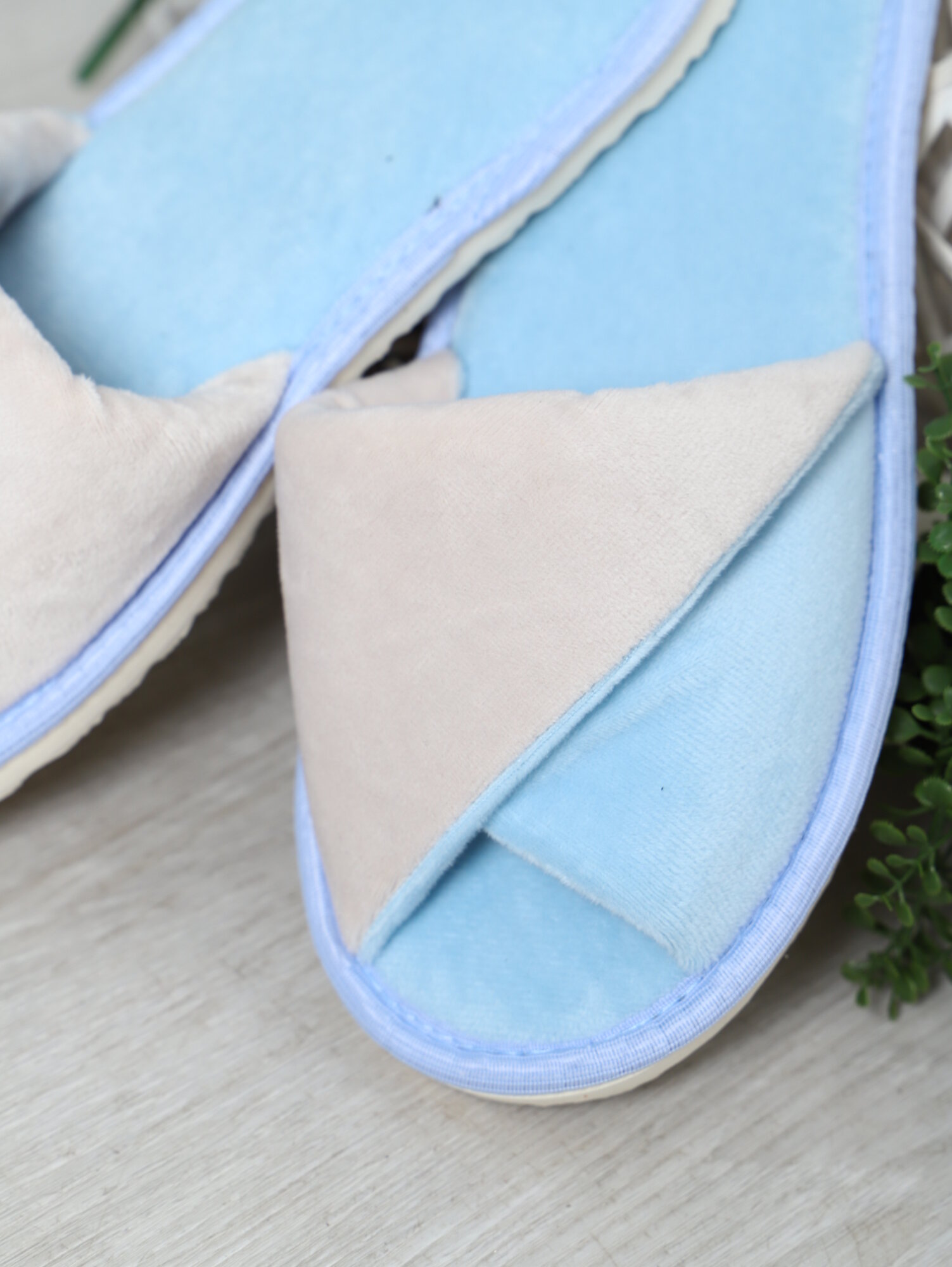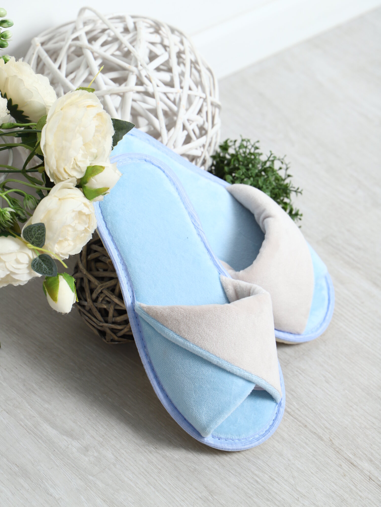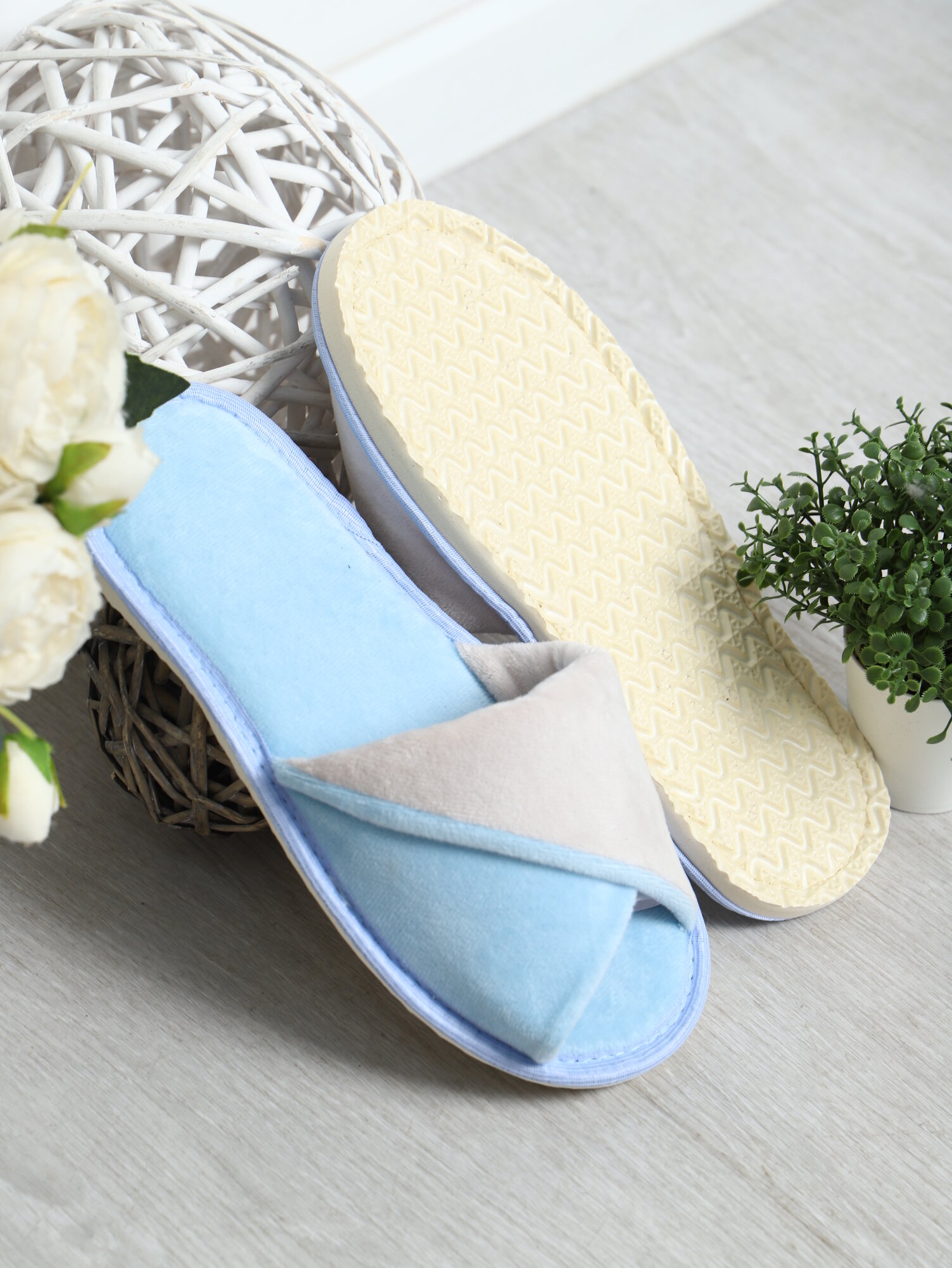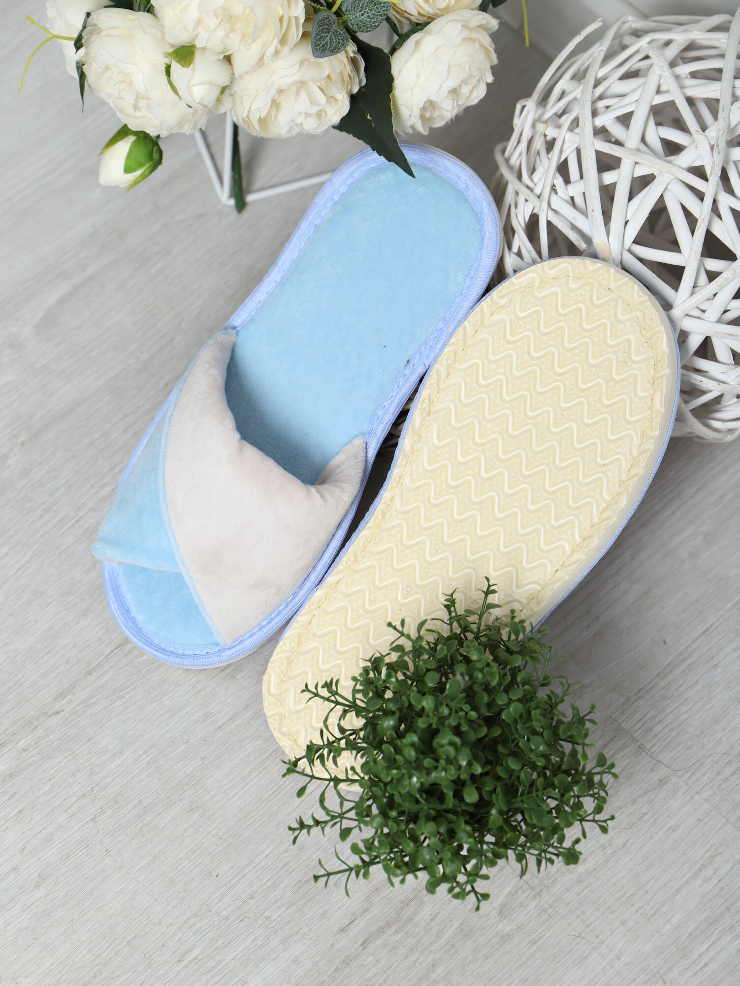 Тапки EMOTION DAY «Голубое облако» (женск. велюр откр. нос, внахлёст) р-р: 36-37