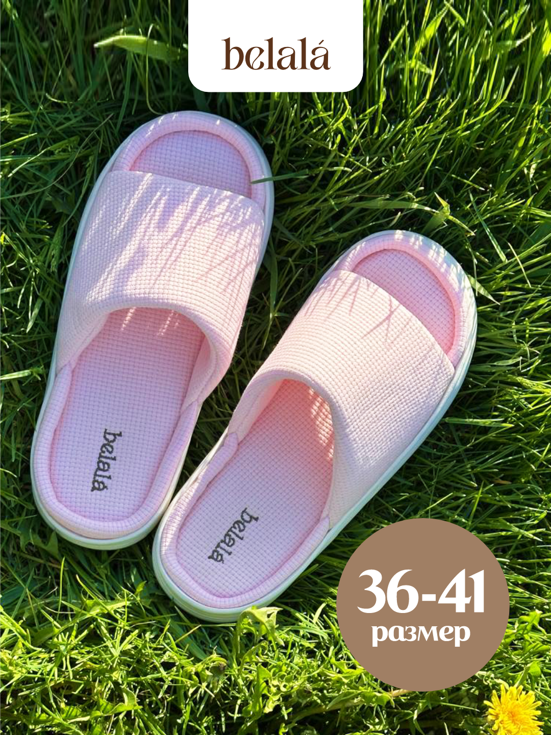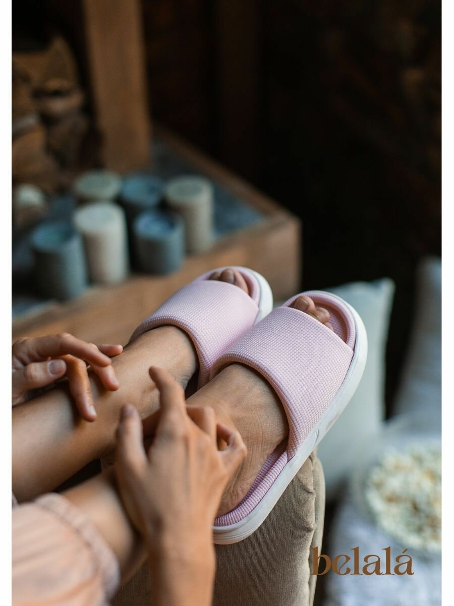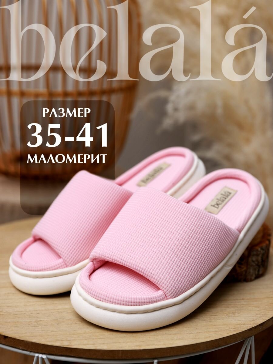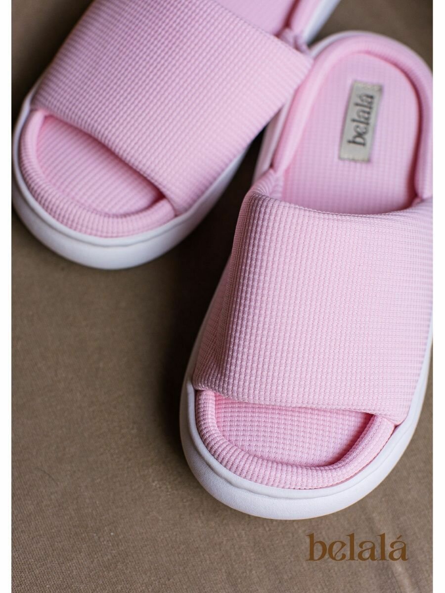Тапочки Belala Тапочки домашние женские тапки хлопковые комнатные открытые для дома из хлопка вафельные, размер 36/37, розовый
