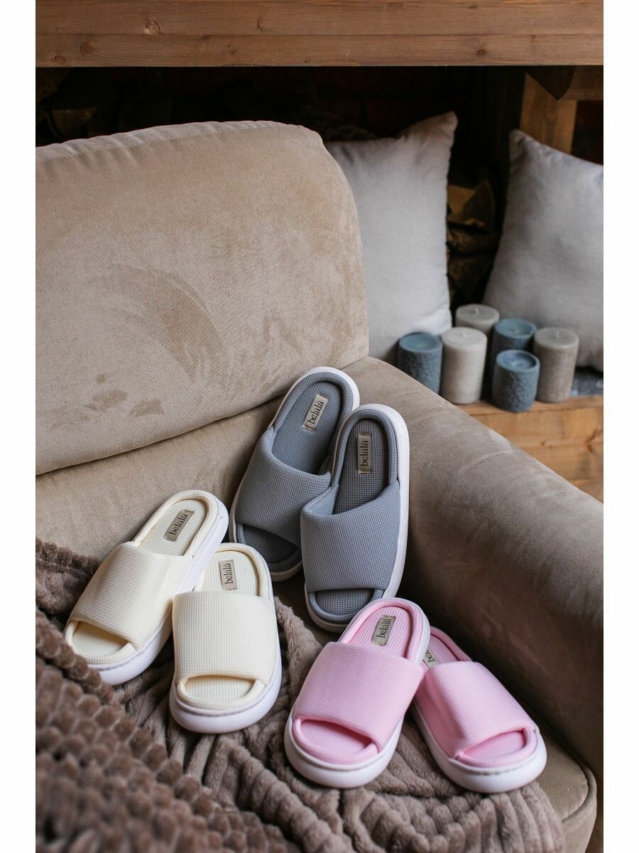 Тапочки Belala Тапочки домашние женские тапки хлопковые комнатные открытые для дома из хлопка вафельные, размер 40/41, серый