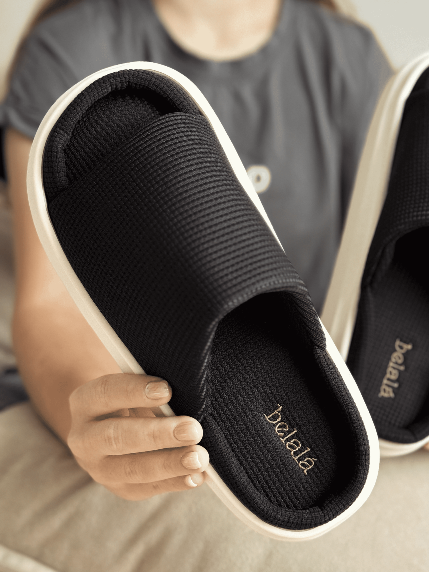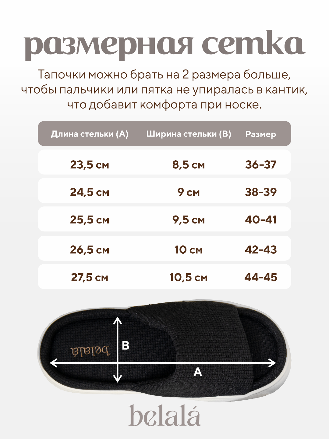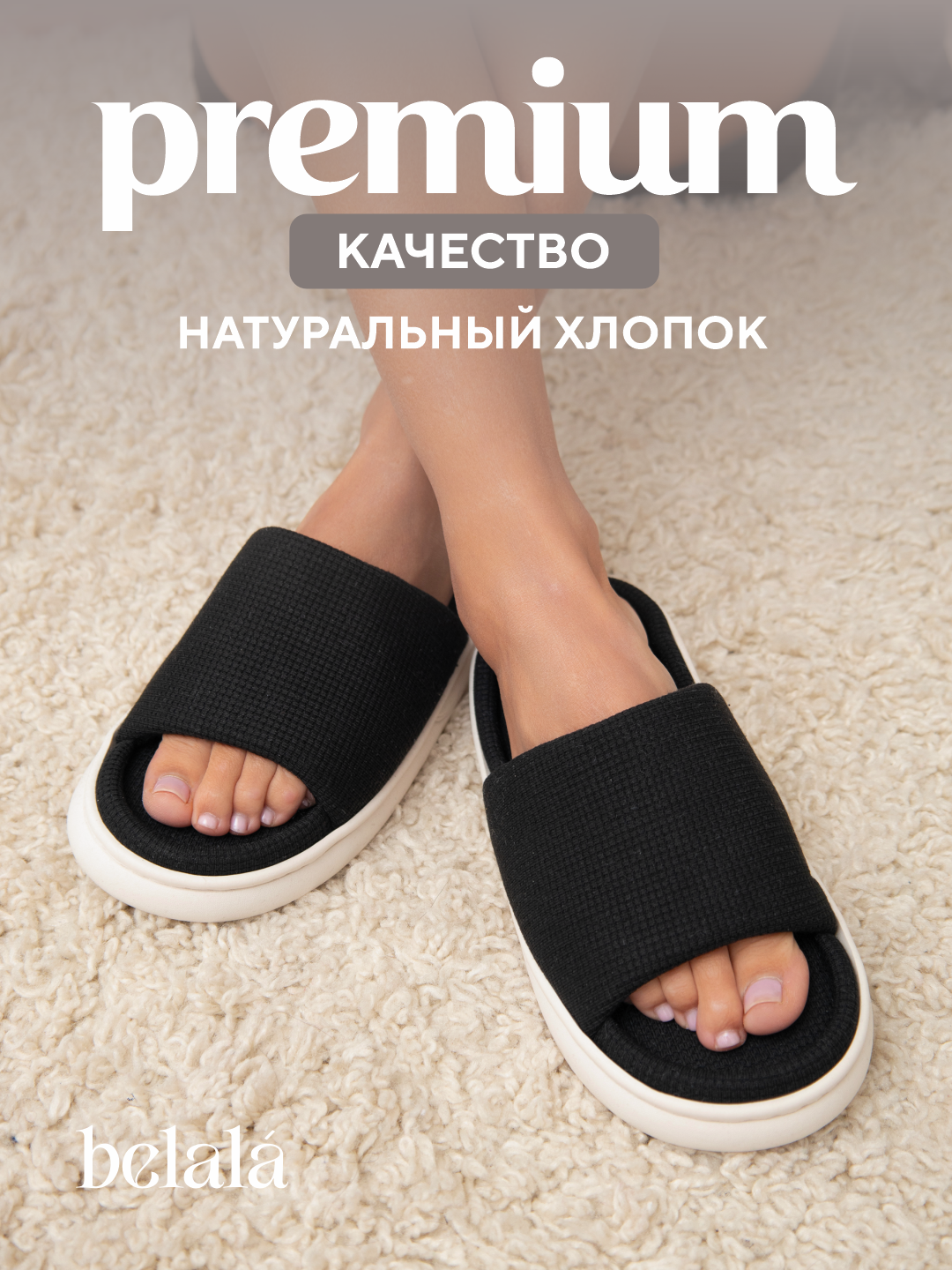 Тапочки Belala Тапочки домашние женские тапки хлопковые комнатные открытые для дома из хлопка вафельные, размер 36/37, черный