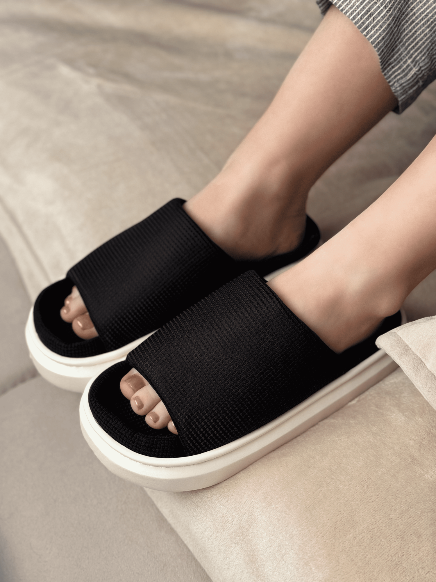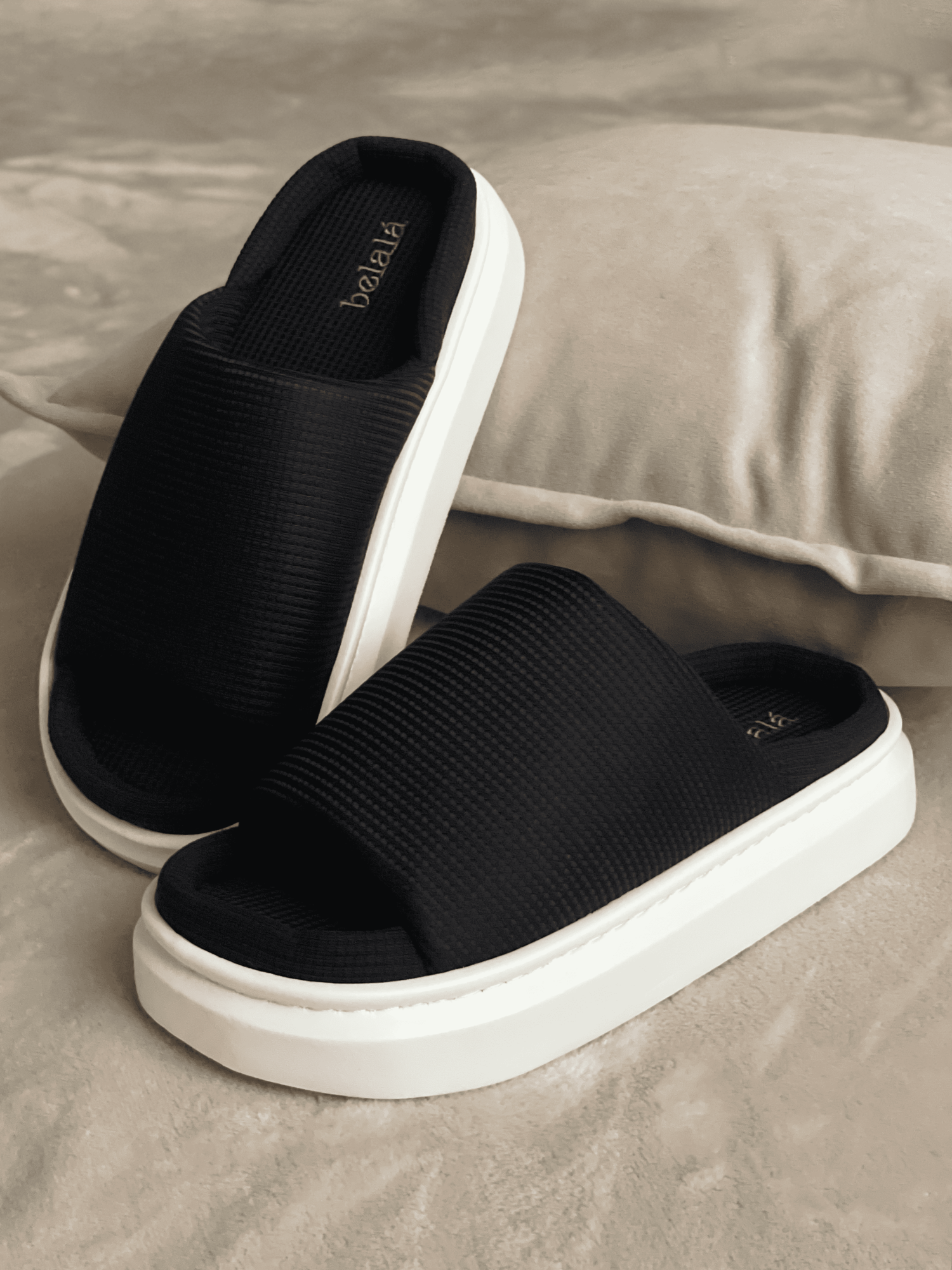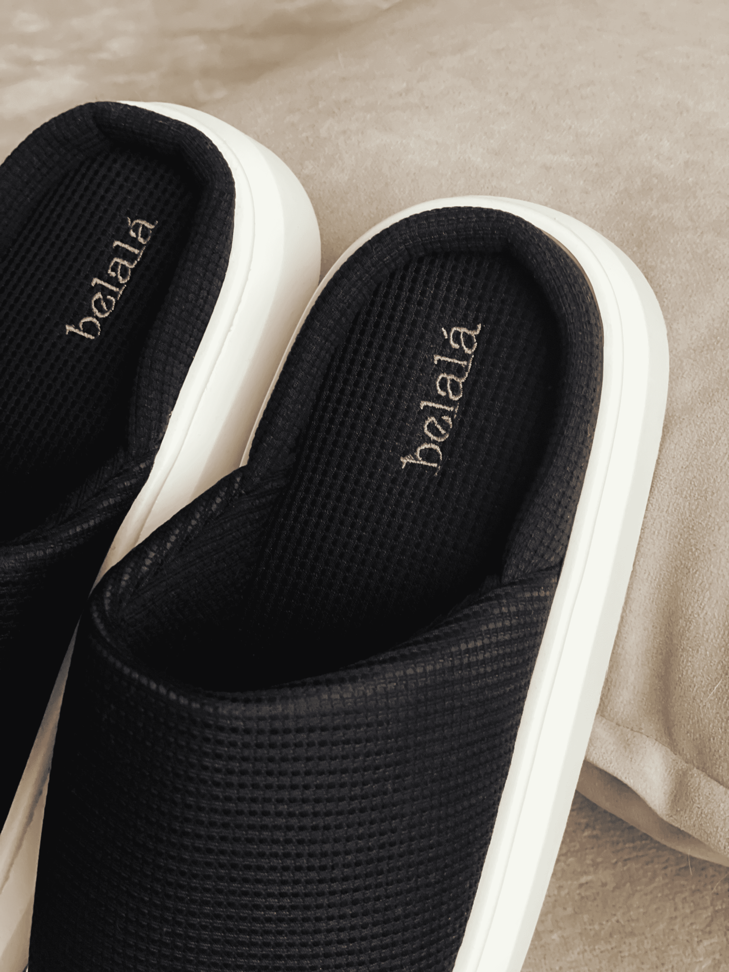 Тапочки Belala Тапочки домашние женские тапки хлопковые комнатные открытые для дома из хлопка вафельные, размер 36/37, черный