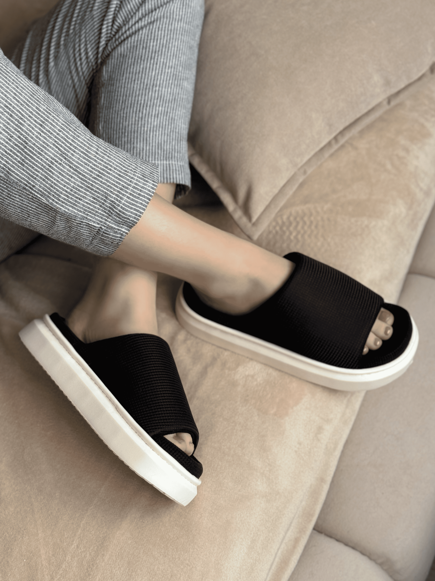 СохранитьТапочки домашние женские тапки комнатные открытые для дома из хлопка 36/37 черные интересное: