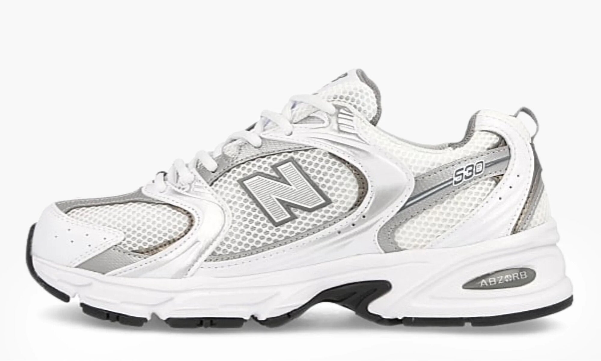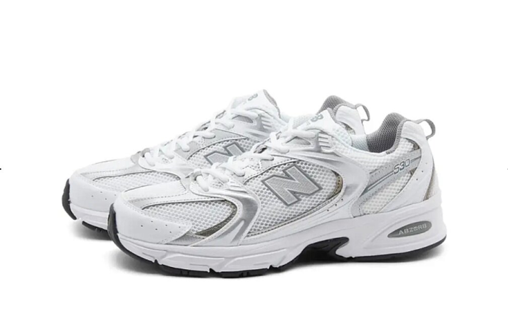 Кроссовки New Balance "530" - белые с серебряными вставками 44.5 eu