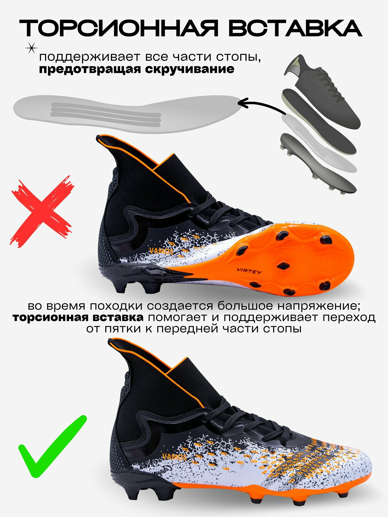 Бутсы Virtey 21093 VAMOS р.41 чёрный/оранжевый