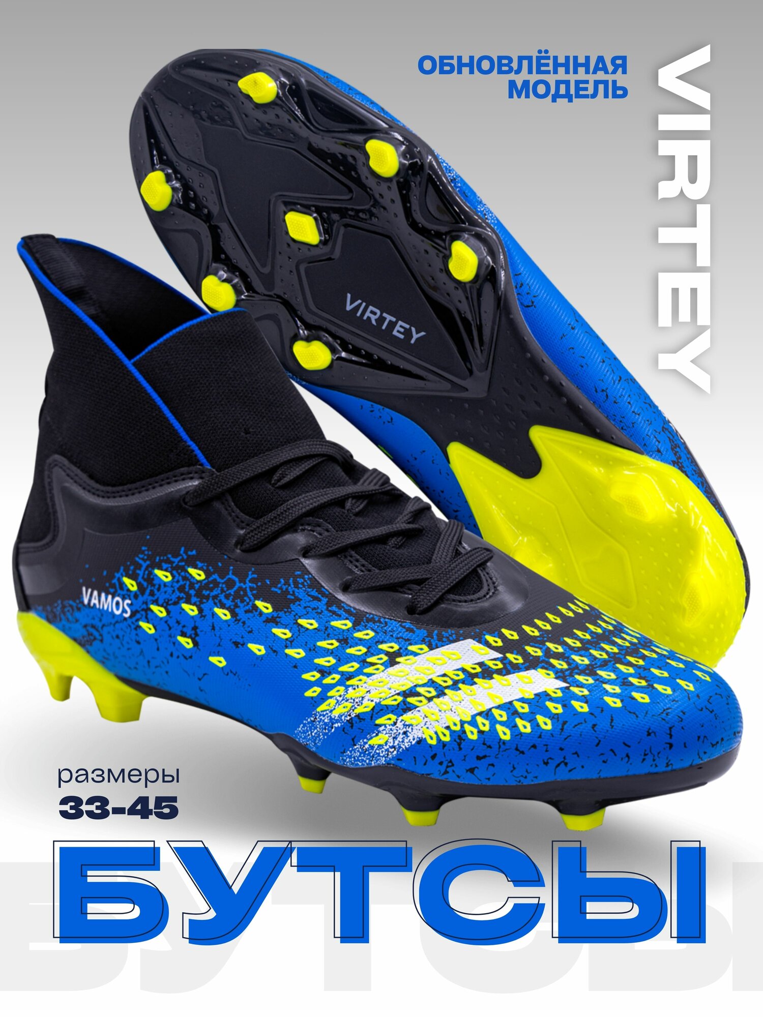 Бутсы Virtey, размер 36, черный, желтый, голубой