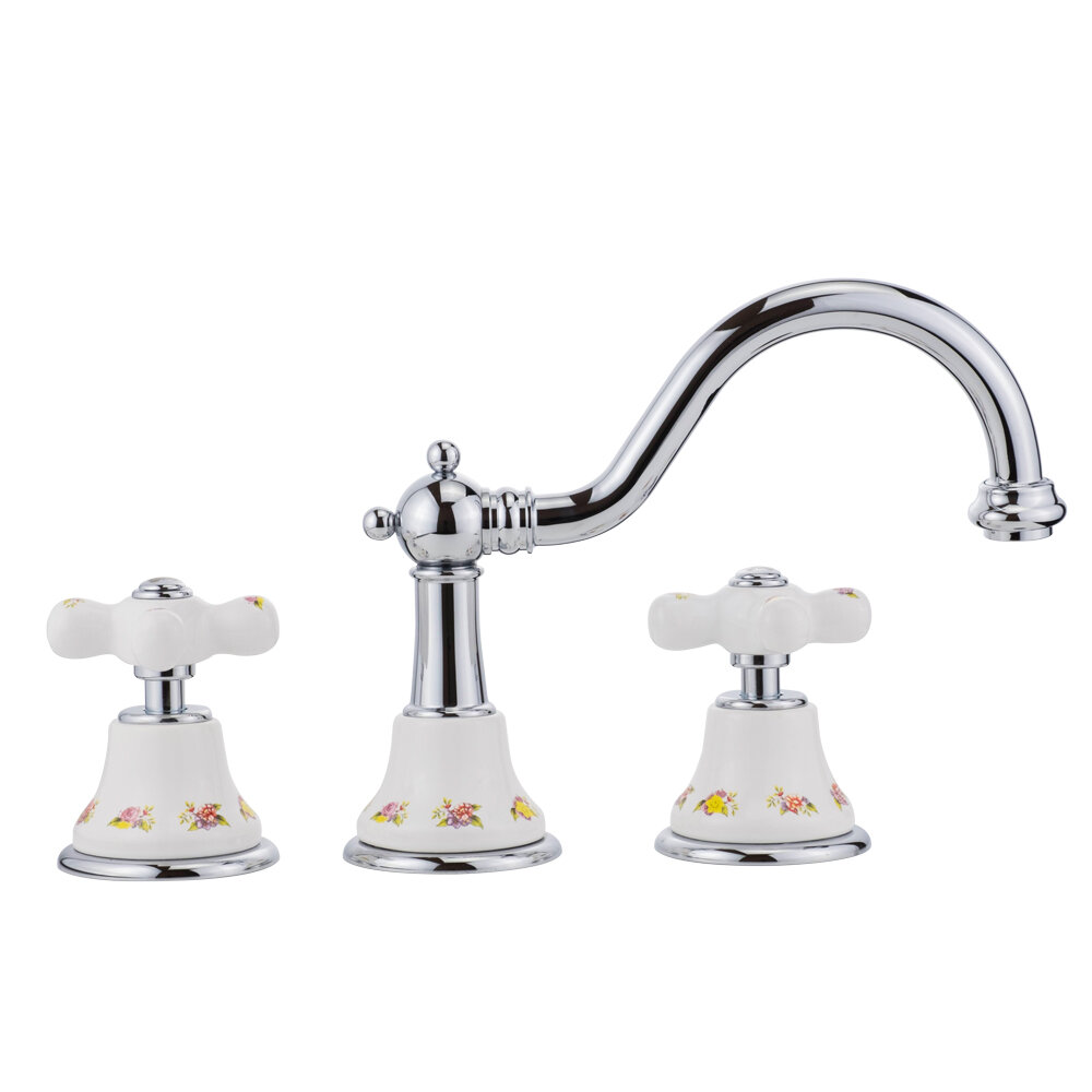 PROVANCE Смеситель для раковины на 3 отв., донный клапан , белый с декором/хром