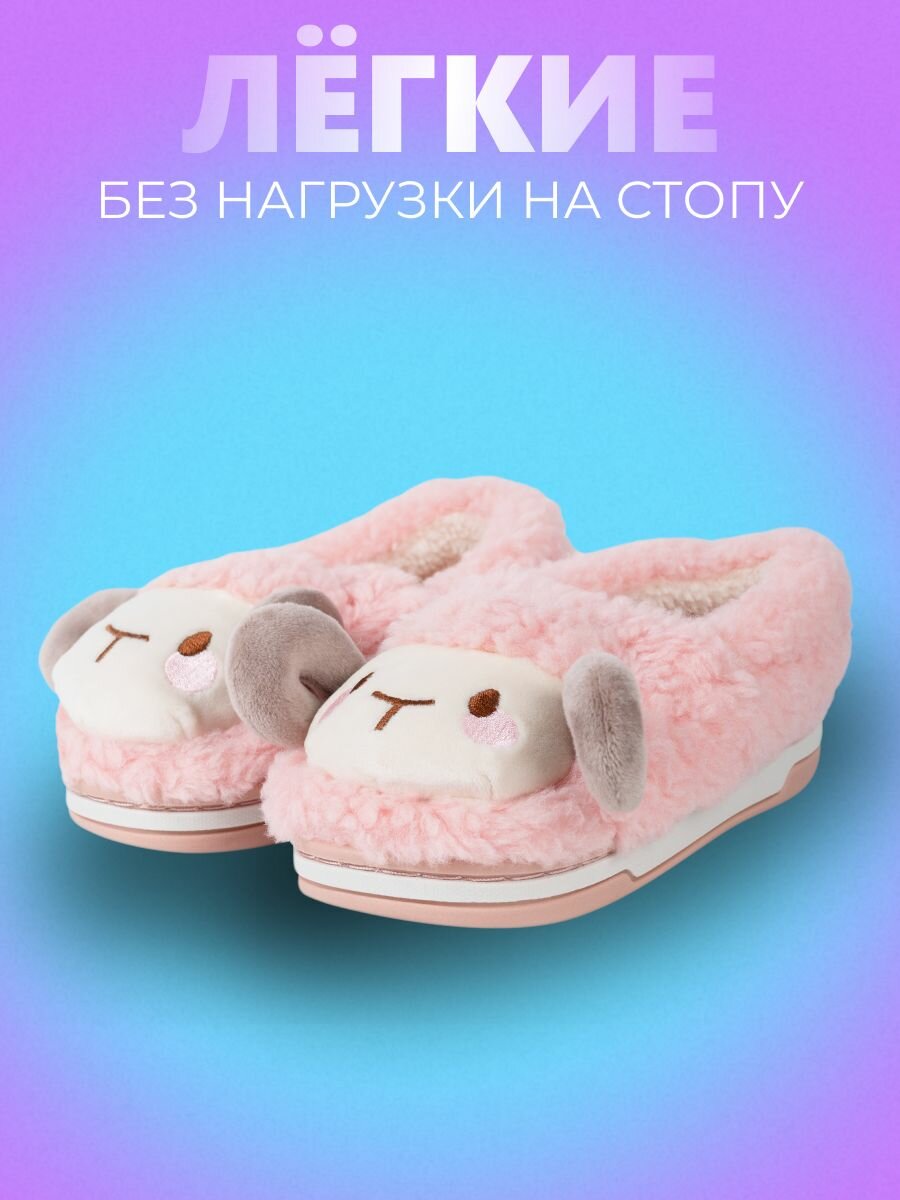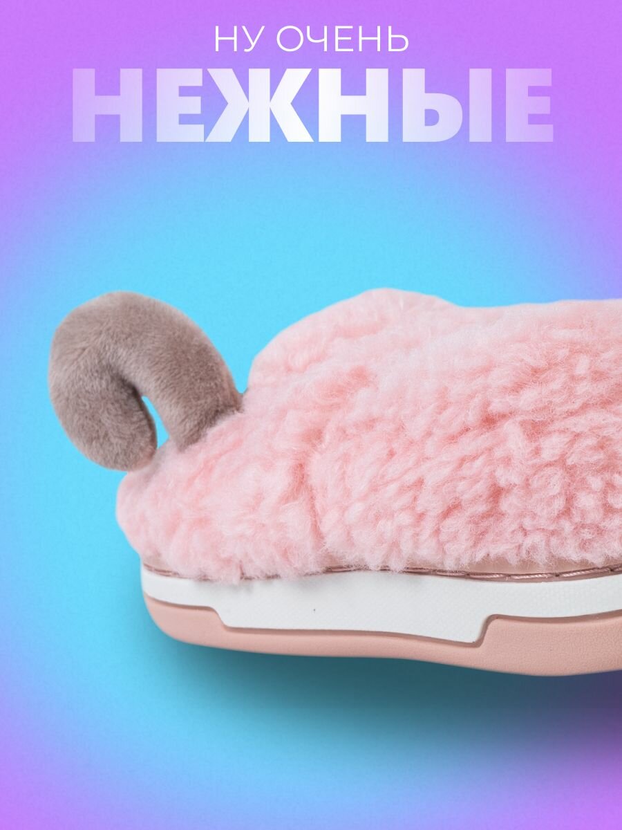 Закрытые меховые домашние детские тапочки Овечки, размер /31-32/, розовые