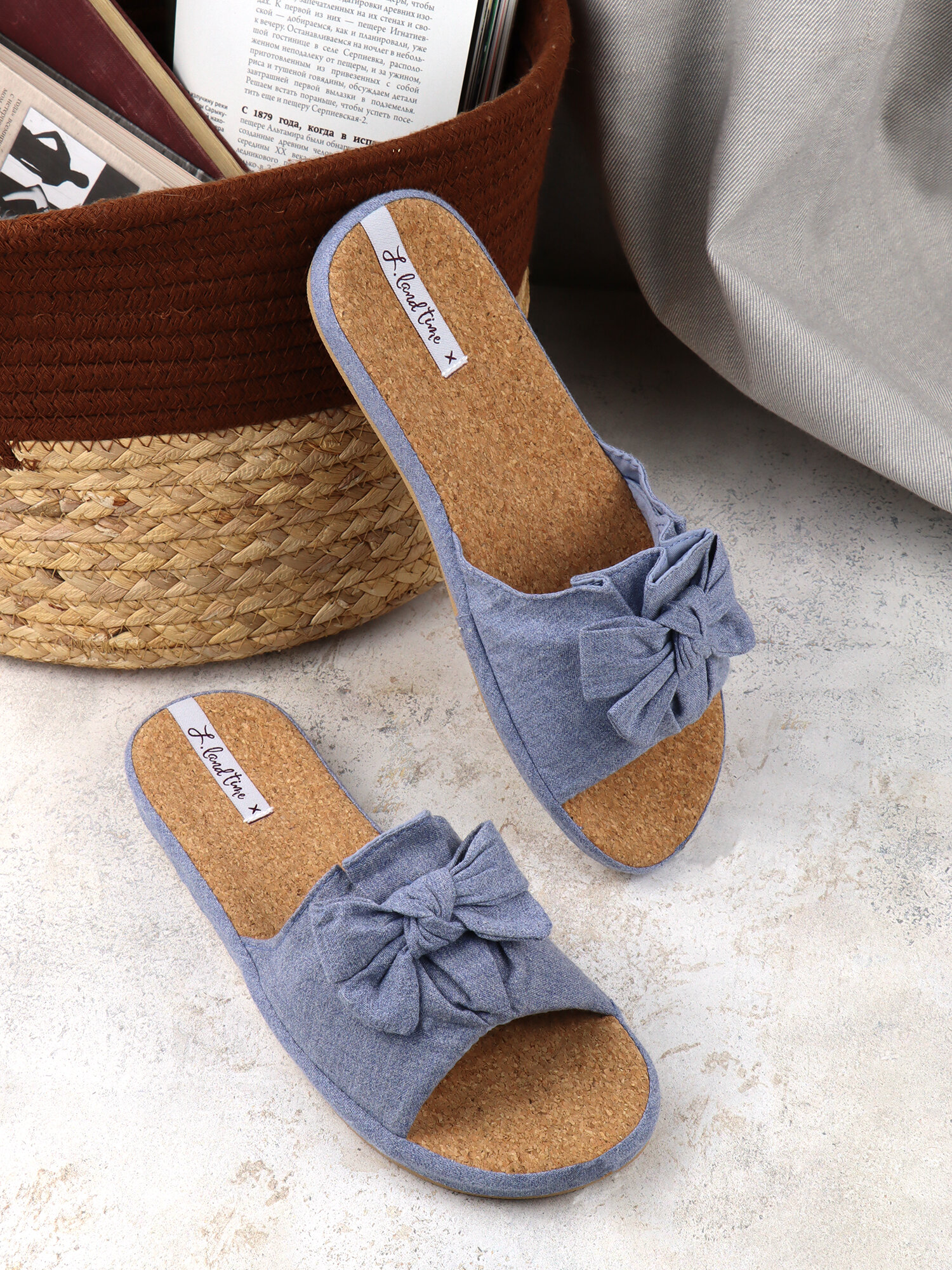 Купить Тапочки женские с пробковой стелькой Lucky Land 3403 W-AO-S голубой 39 размер (24.3см-24.7см)