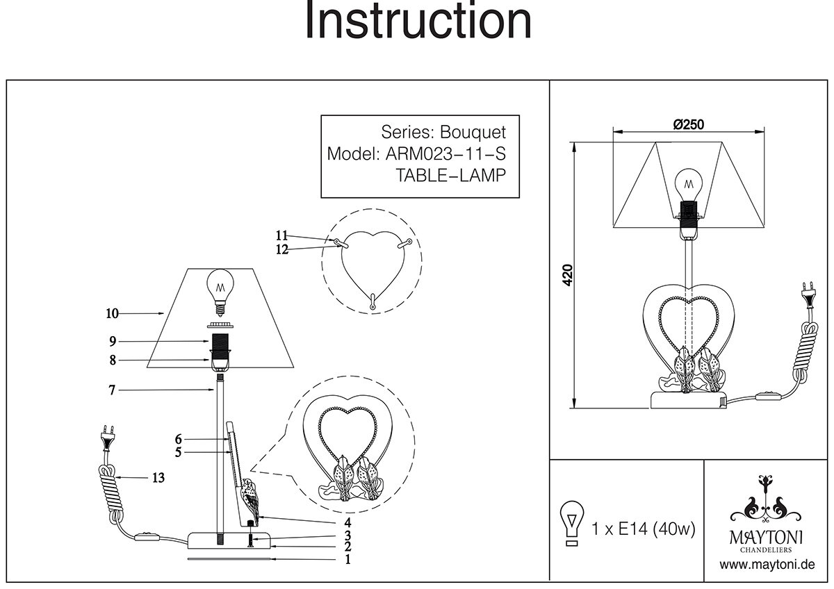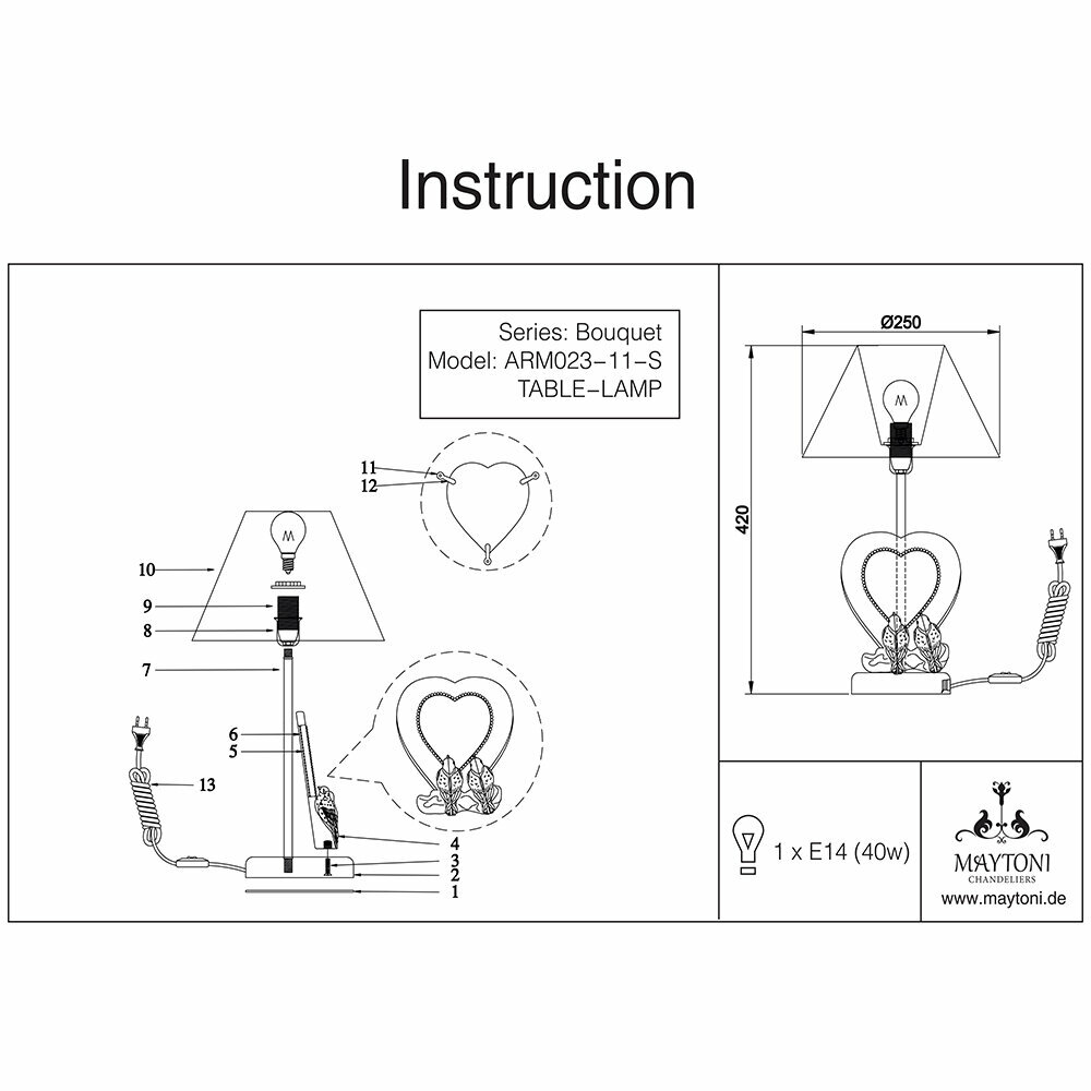 Настольная лампа с сердечком и птичками Maytoni Bouquet ARM023-11-S