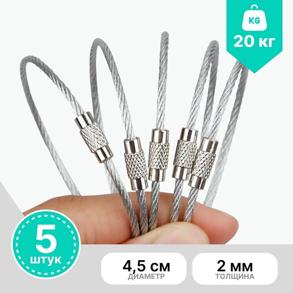 Кольцо для ключей, брелоков и инструментов в форме тросика, 2х150 мм, 5 шт. (серебристый) интересное: