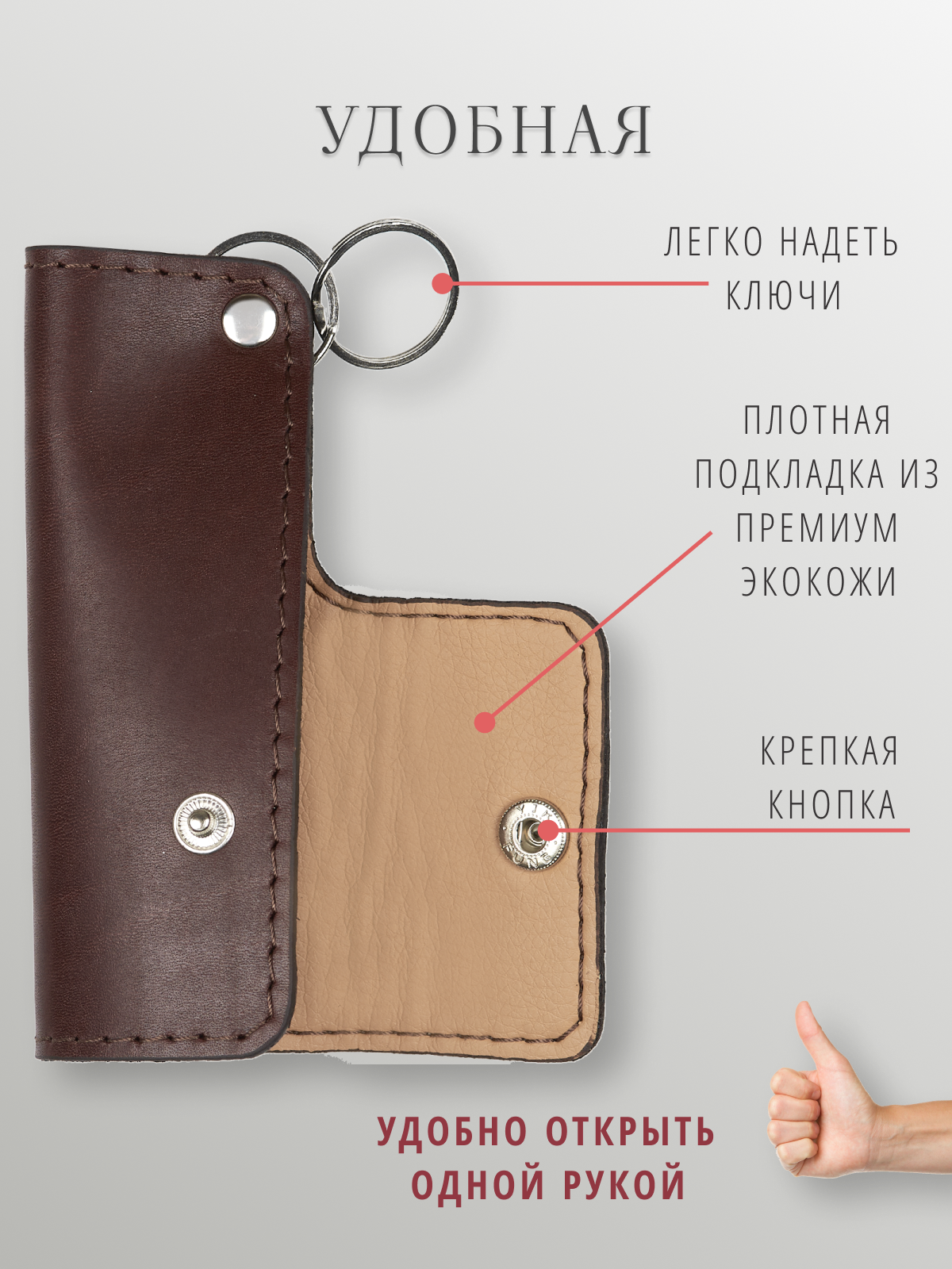 Ключница кожаная карманная чехол для ключей, коричневая интересное: